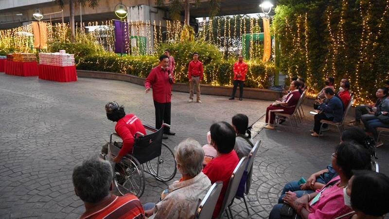 โดยได้มอบสิ่งของทั้งหมดให้กับชาวบ้านในชุมชนพื้นที่หลักสี่ พร้อมกับเลี้ยงอาหารเช้าให้กับชาวบ้านที่มารอรับสิ่งของนับ 100 คน ก่อนจะให้อั่งเปากับพนักงานมาในเครือด้วย