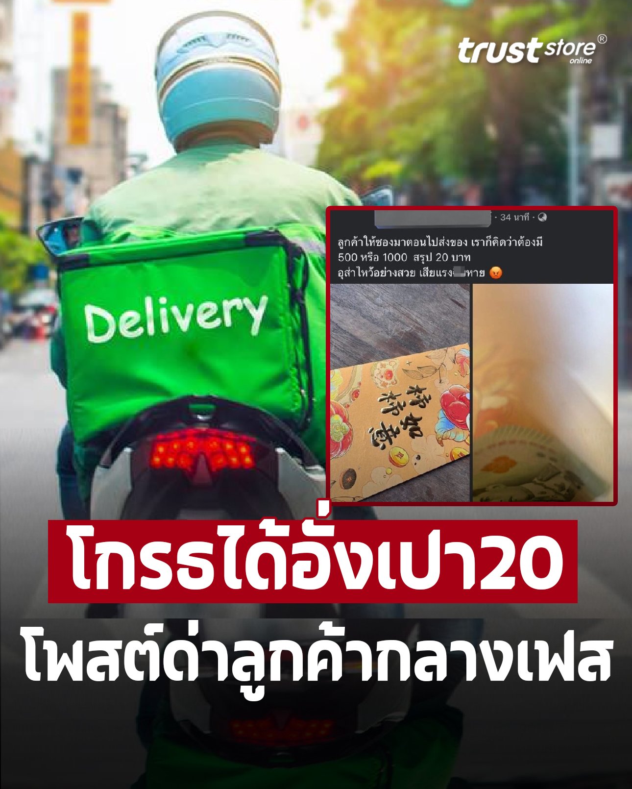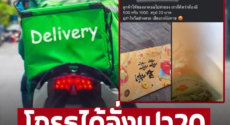 ไรเดอร์โพสต์ไม่พอใจ ลูกค้าให้อั่งเปาวันตรุษจีน นึกว่าจะได้ 500 – 1,000 เปิดมาเจอแบงค์ 20 ฉุนจัด อุตส่าห์ไหว้อย่างสวย ด้านชาวเน็ตจวกยับ