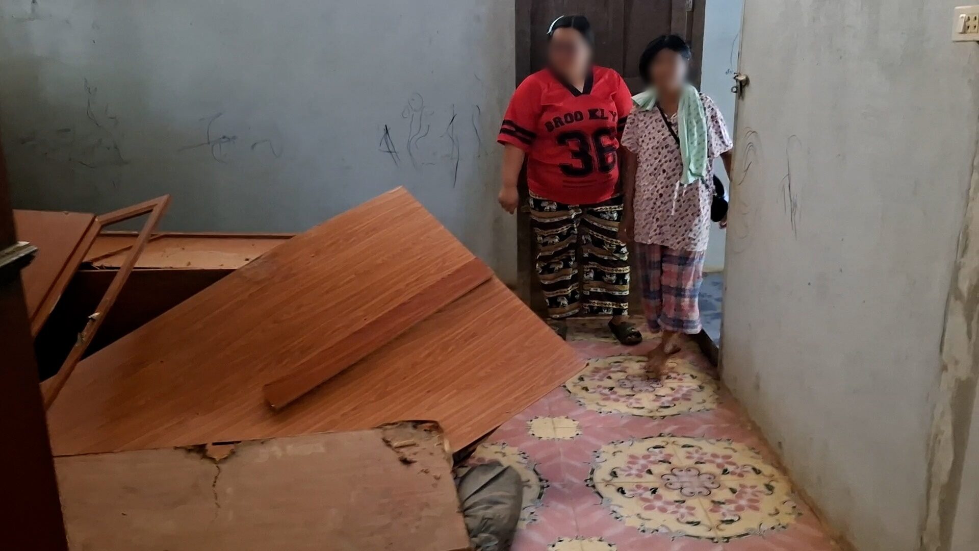 ผู้สื่อข่าวเดินทางไปตรวจสอบบ้านดังกล่าว เป็นบ้านของ นายวสันต์ อายุ 23 ปี โดยพบกับ นางบุญมี อายุ 73 ปี ย่าของ นายวสันต์ พาผู้สื่อข่าวดูร่องรอยความเสียหายที่เกิดขึ้นภายในบริเวณใต้ถุนบ้านและภายในบ้าน