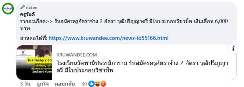 โรงเรียน รับสมัครครู 2 อัตรา (ลูกจ้างชั่วคราว) วุฒิปริญญาตรี เงินเดือน 6,000 ด้านโซเชียลวิจารณ์นี่เงินเดือนวุฒิ ป.ตรี หรือ ป.6