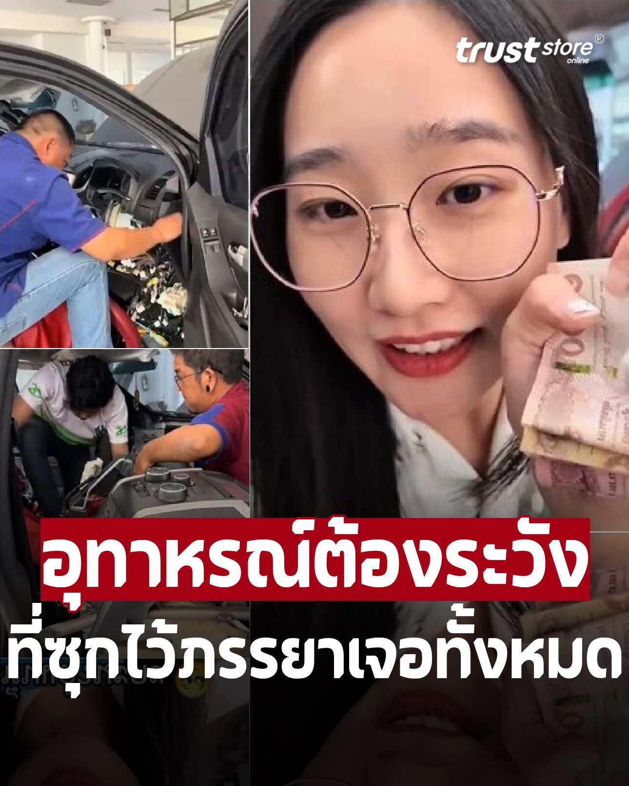 คลิปไวรัล สาวตะลึง เอารถสามีมาล้างแอร์ ช่างกำลังประกอบคอนโซล เจอ เงินซ่อนข้างใต้เป็นฟ่อนๆ ซอกต่างๆ ในรถอีกเพียบ ทั้งแบงก์พัน แบงก์ร้อย