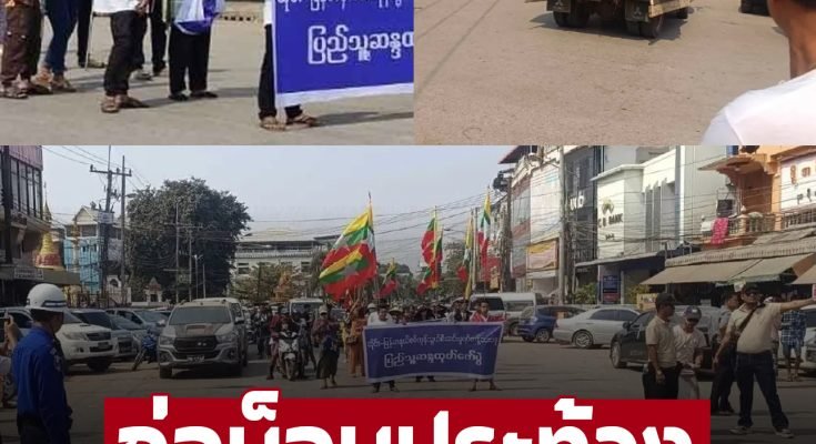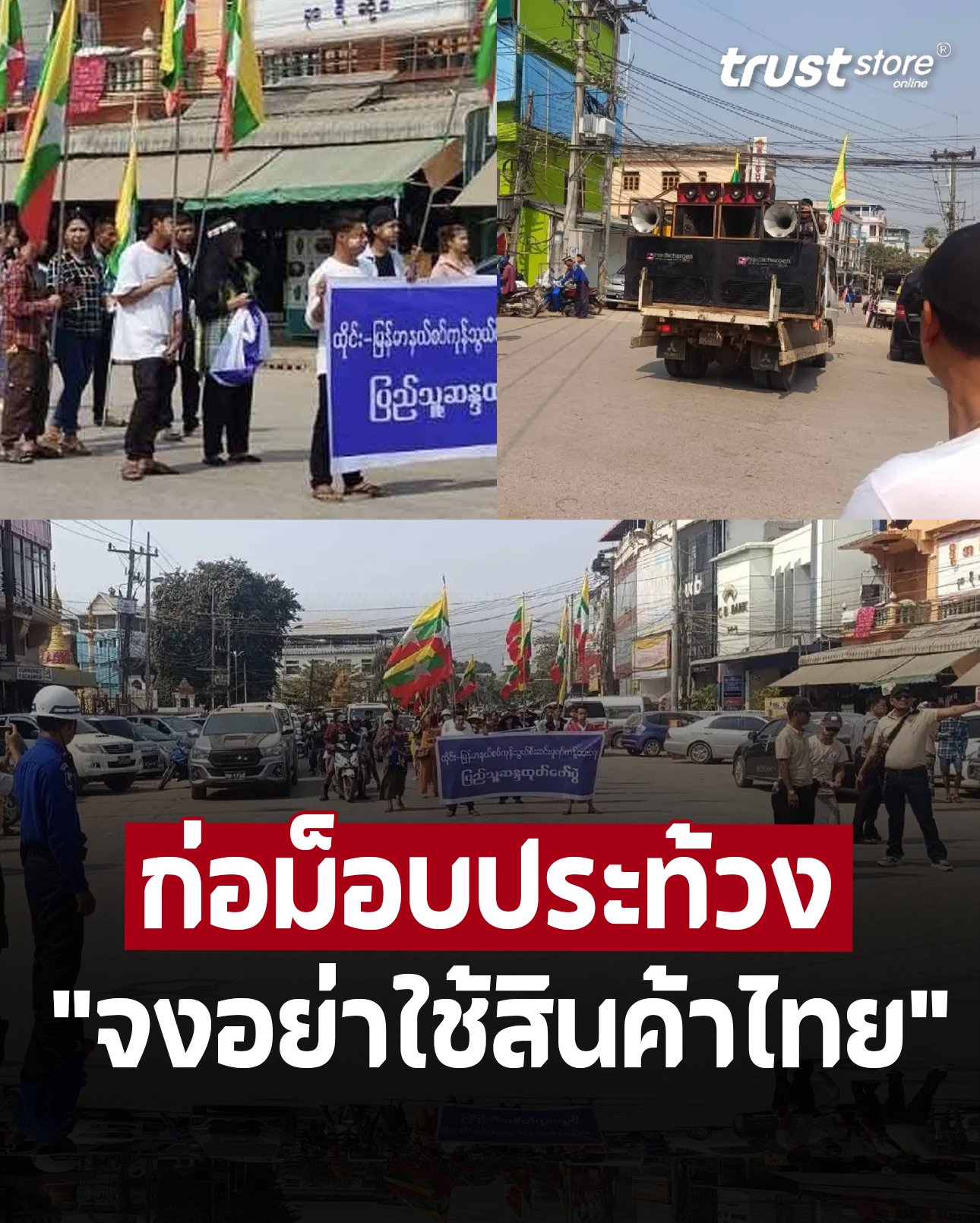 ม็อบมาแล้ว ชาวเมียนมา ประท้วงปมตัดไฟ ชูป้าย-ตะโกน “จงอย่าใช้สินค้าไทย” ปลุกปิดสะพานมิตรภาพไทย-เมียนมา-ท่าข้าม