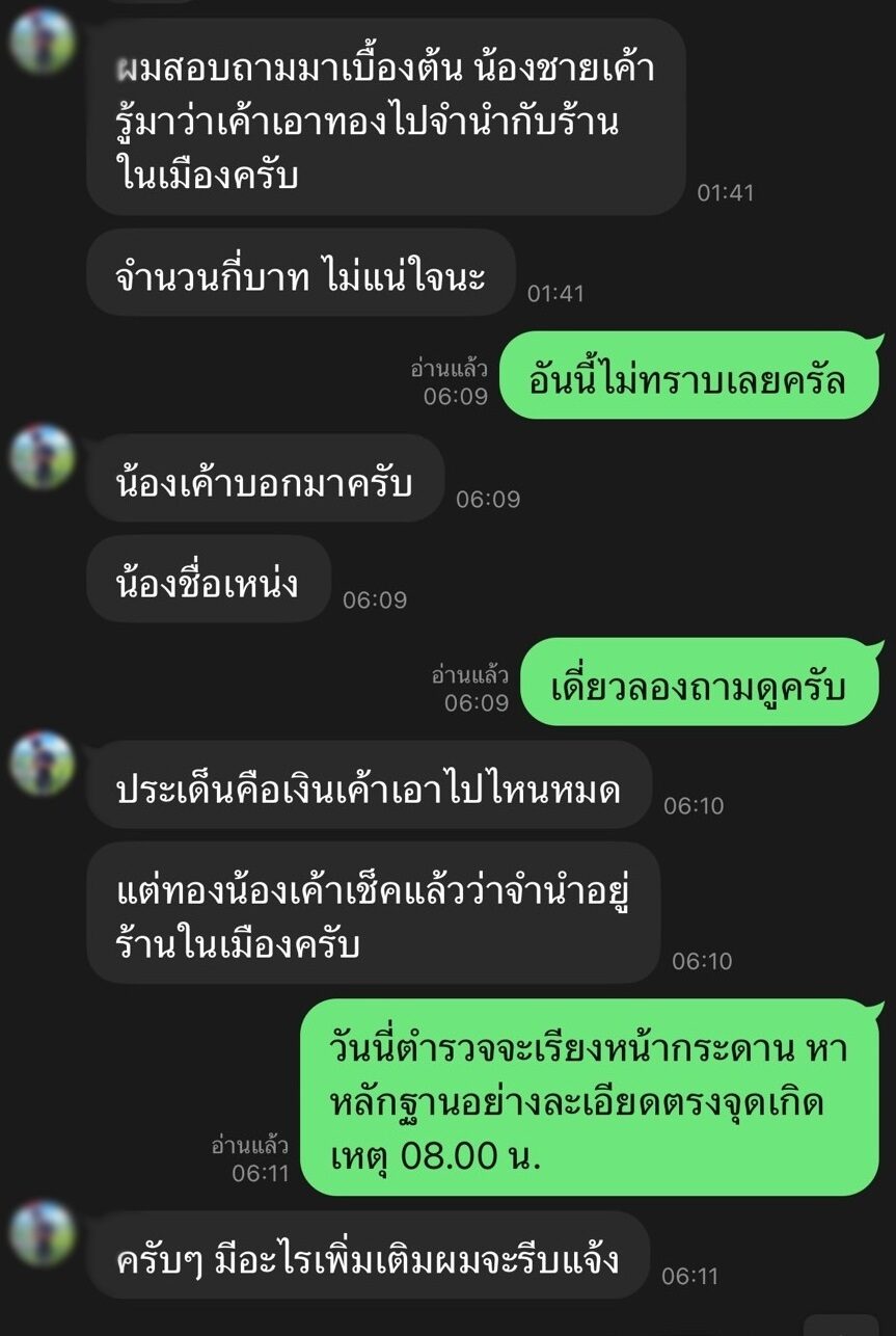 ” เมื่อผมเดินกลับไปที่รถหลังทำข่าวเสร็จ กำลังจะขับรถออกจากจุดเกิดเหตุ ชายคนนั้นเดินตามไปถามว่าจะไปไหนต่อ ตนตอบว่าเดี๋ยวจะไปโรงพัก ซึ่งก็ยังเอะใจว่าชายคนนี้คือใคร ทำไมถึงดูเหมือนรู้จักกับเราแบบนี้ ต่อมาเวลา 01.40 น. วันที่ 14 ก.พ. ชายคนที่เราเจอส่งไลน์มาหา ลักษณะแจ้งเบาะแสว่าได้ข้อมูลจาก นายโป๊งเหน่ง หรือนายบอล น้องชายเมียผู้ตาย แจ้งว่าผู้ตายนำทองคำไปจำนำในตัวเมืองกำแพงเพชร จำนวนกี่บาทไม่แน่ใจ และถามเราว่ารู้เบาะแสหรือไม่ ”