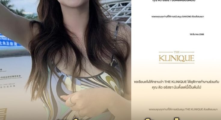 “ขอเรียนแจ้งให้ทราบ THE KLINIQUE ได้ยุติการร่วมงานกับ คุณ ดิว อริสรา นับตั้งแต่วันนี้ 19 มี.ค. 2568 เป็นต้นไป ขอบคุณค่ะ”