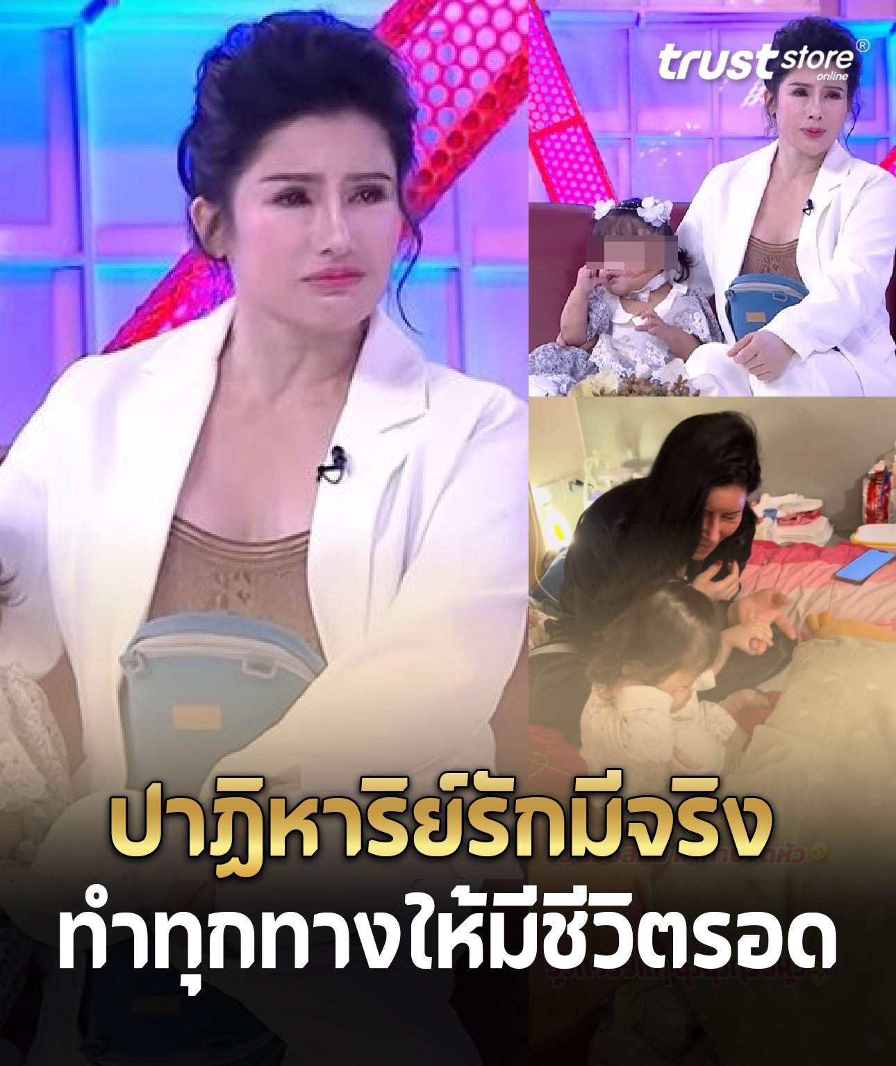 “เขามีค่ากับหนูทุกวินาที (น้ำตาคลอ)นี่ก็ชอบของสวยงาม แต่หนูเห็นเขาหนูเสียสละให้เขาดีกว่า ฉีดโบท็อกซ์ ทำอะไร เก็บเงินรักษาเขาดีกว่า ให้เขารอดมีชีวิตได้ ที่โรงพยาบาลอาจารย์หมอบอกว่าไม่เคยเห็นเด็กที่ไหนสู้ขนาดนี้ น็อกจนปั๊มหัวใจ หนูสู้ไหม ถ้าหนูสู้หนูฟื้น กราฟเขาตรงแล้ว ก็กลับมา ”