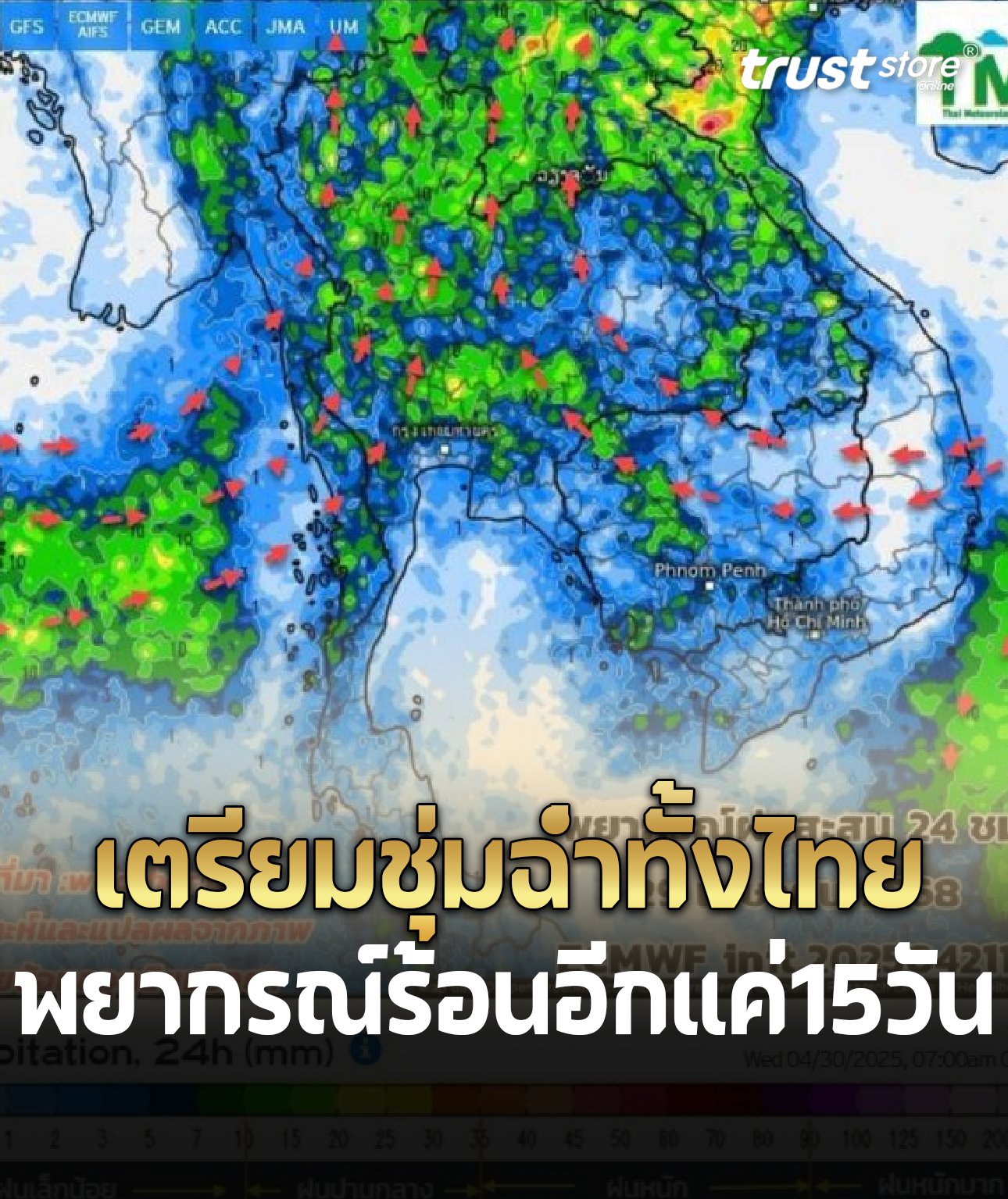กรมอุตุฯ พยากรณ์ฝน 15 วัน ทนร้อนอีกไม่กี่วัน พายุฤดูร้อน กำลังมา เผยช่วงเวลาถล่ม เม.ย.ปีนี้ฝนมาเป็นระยะ พอช่วยคลายร้อน แม้ปริมาณยังไม่มาก