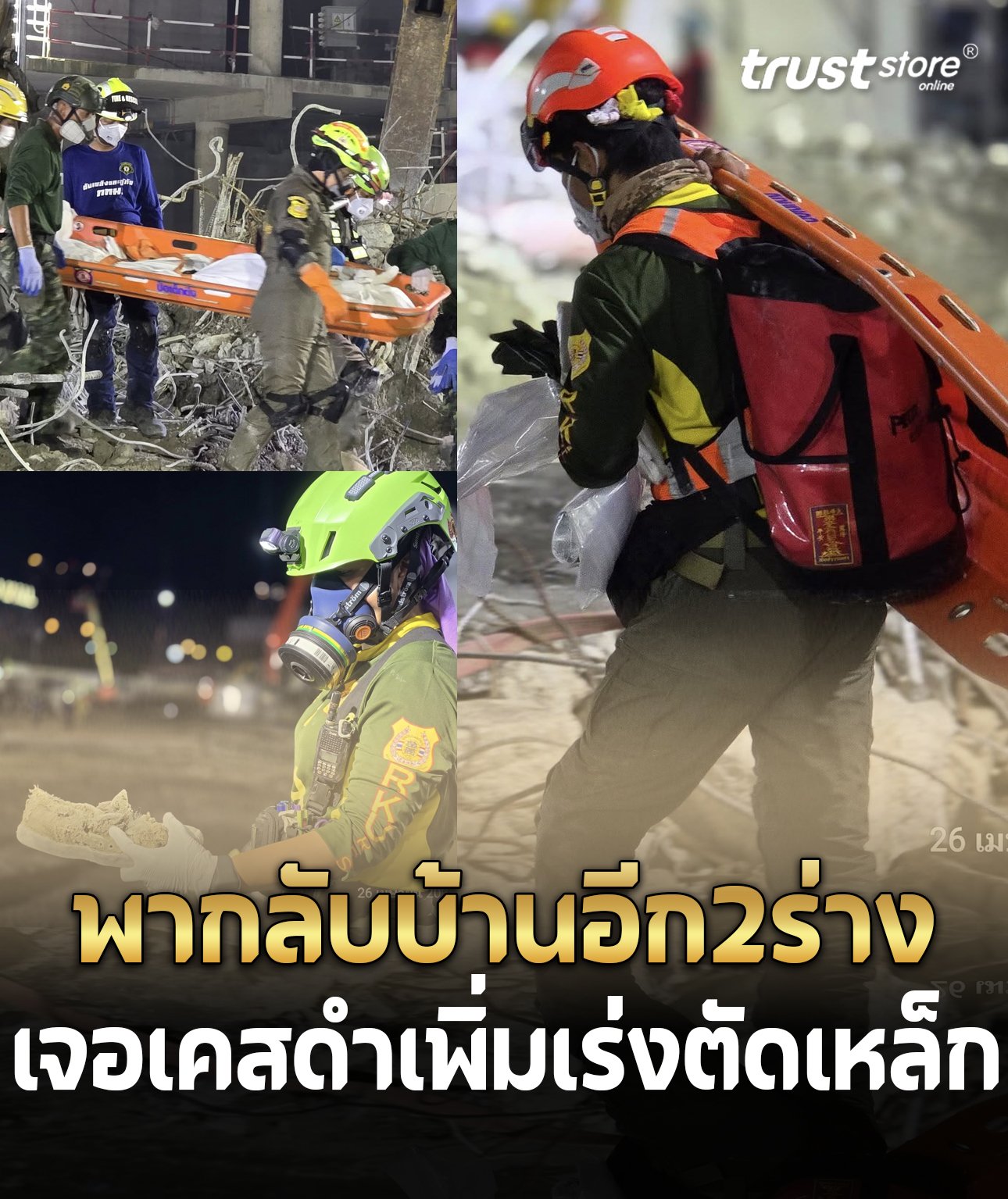 พากลับบ้านได้อีก 2 เคสดำตึกสตง.ถล่ม จนท.ลุยตัดเหล็กเจาะคอนกรีตเพิ่ม
