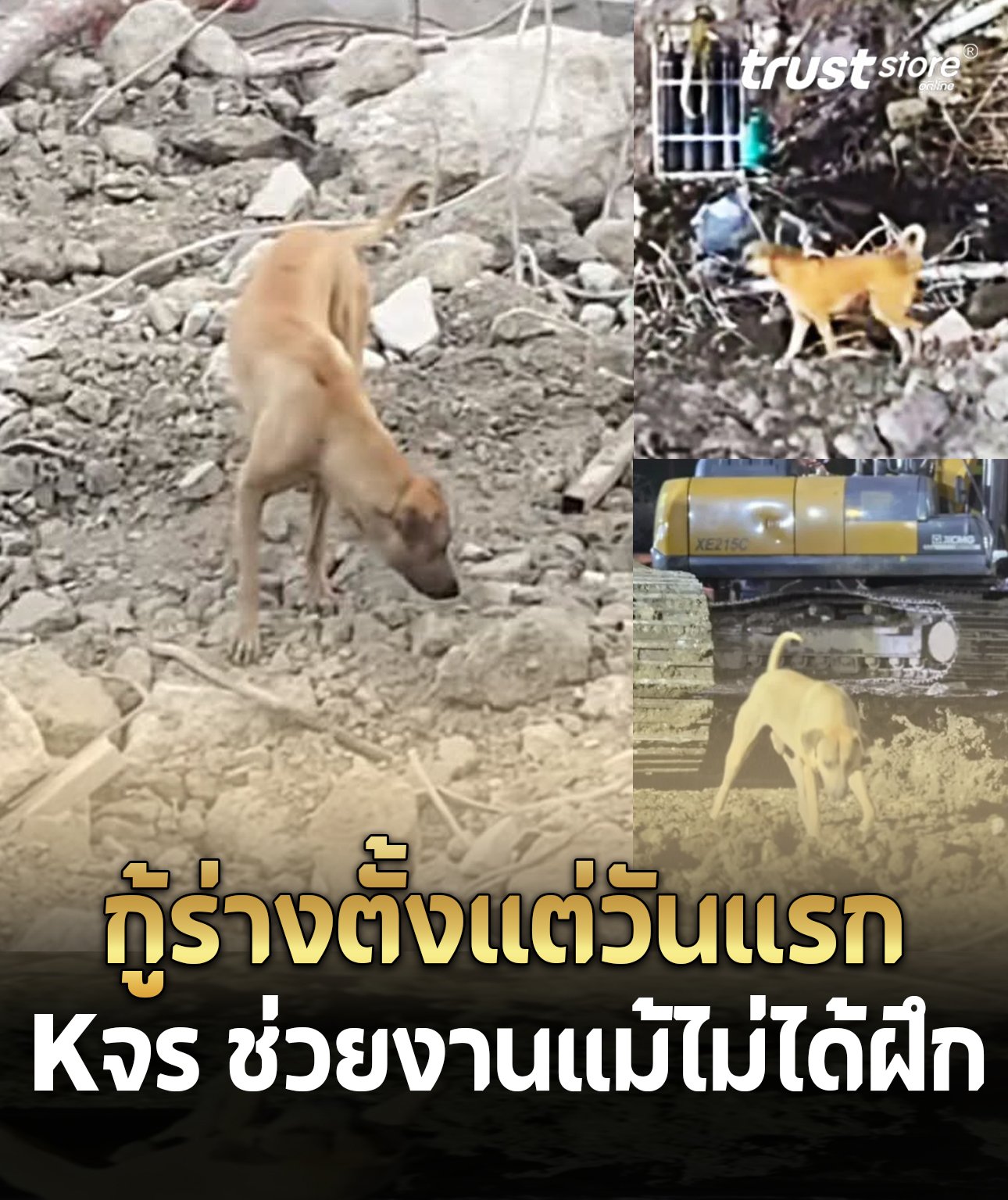 แม้ไม่ใช่สุนัข K-9 แต่หมาจรไร้เจ้าของตัวนี้อยู่ในบริเวณตึกสตง.ถล่มตั้งแต่วันแรกจนถึงวันนี้ โดยติดตามทีมกู้ภัยและช่วยให้เจอร่างผู้สูญหายถึง 2 ร่าง