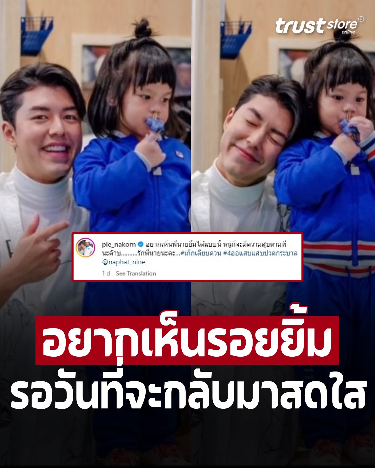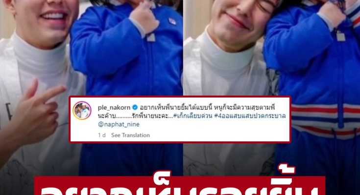 นอกจากนี้ พบว่าเปิ้ล นาคร โพสต์อินสตราแกรมส่วนตัว @ple_nakorn เผยภาพลูกสาวและหนุ่มนาย พร้อมข้อความส่งกำลังใจ บอกว่า “อยากเห็นพี่นายยิ้มได้แบบนี้ หนูก็จะมีความสุขตามพี่นะค๊าบ……….รักพี่นายนะคะ…#เก็กเลียบด่วน #4ออแสบแสบปวดกระบาล @naphat_nine”