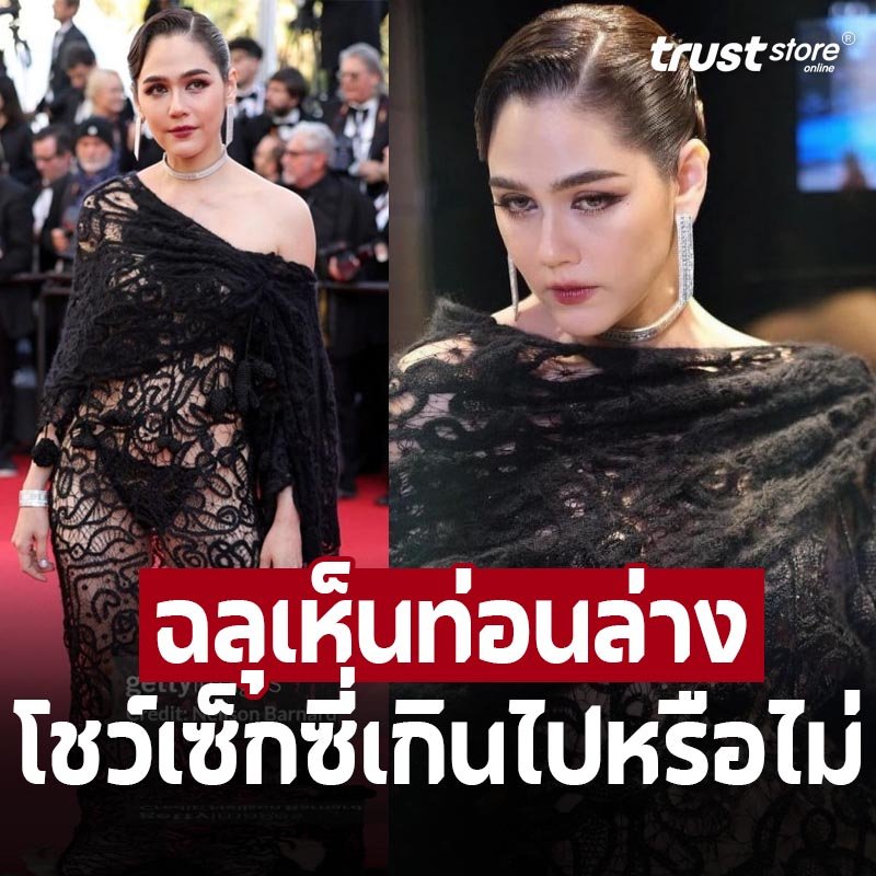 สวยโฮ่ง!เปรี้ยวเยี่ยวที่สุด สำหรับ ลุคที่3 ของแม่ชมพู่ อารยา ในพรหมแดงเทศกาลหนังเมืองคานส์ ที่ ฝรั่งเศส โดยงานนี้่แม่ชมมาในลุคลูกไม้ซีทรูสีดำของ Maison Margiela