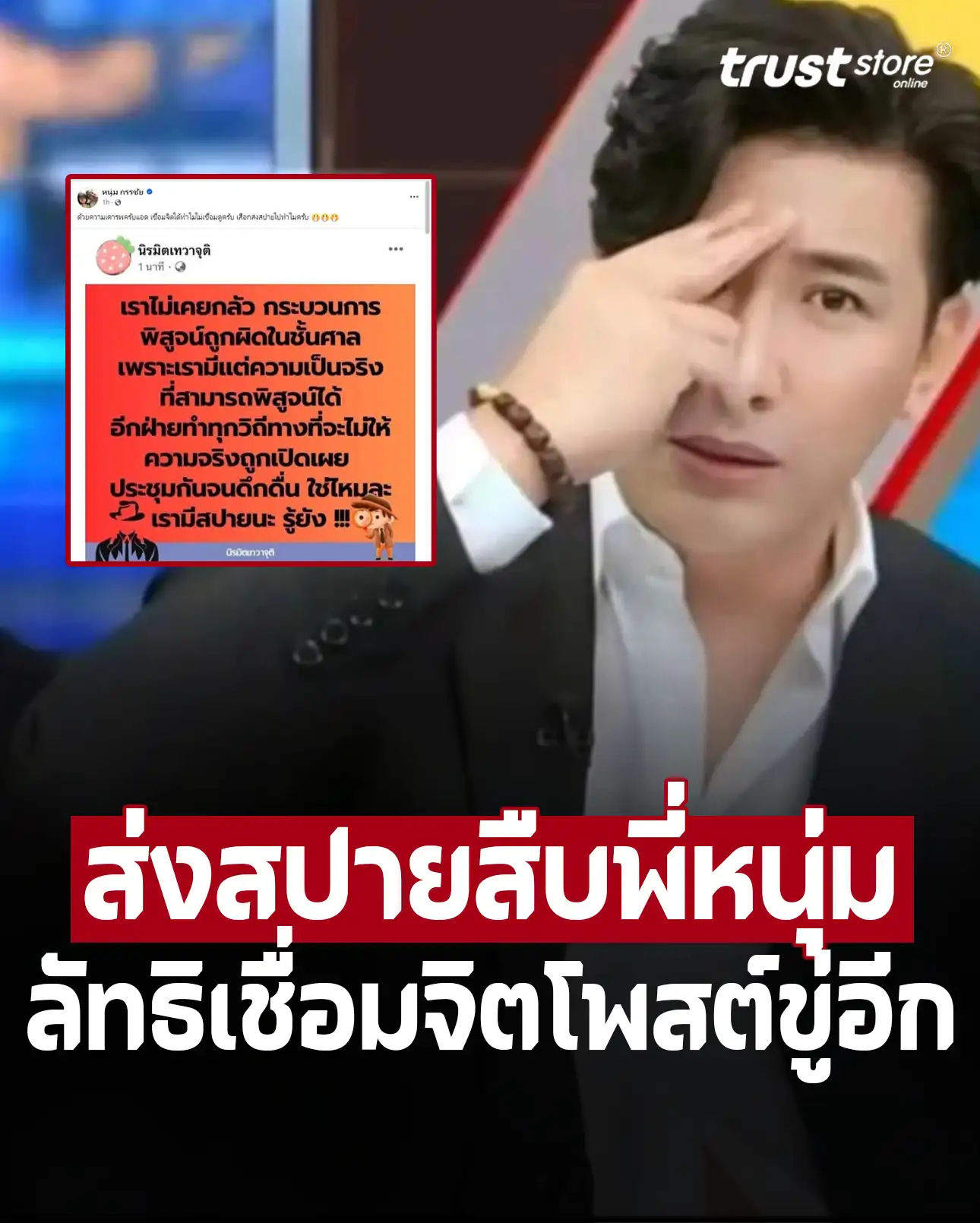 เพื่อตอบโต้เพจดังที่มีการโพสต์ข้อไว้ก่อนหน้านี้ว่า “เราไม่เคยกลัว กระบวนการพิสูจน์ในชั้นศาล เพราะเรามีแต่ความจริงที่สามารถพิสูจน์ได้ อีกฝ่ายทำทุกวิถีทางที่จะไม่ให้ความจริงถูกเปิดเผย ประชุมกันจนดึกดื่นใช่ไหมละ เรามีสปายนะ รู้ยัง”