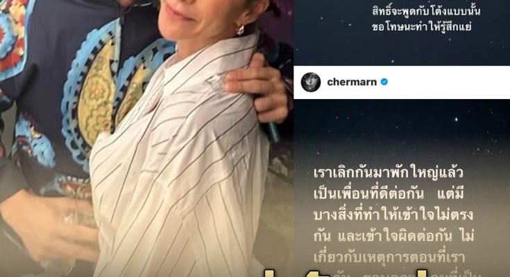 เราเลิกกันมาพักใหญ่แล้วเป็นเพื่อนที่ดีต่อกัน แต่มีบางสิ่งที่ทำให้เข้าใจไม่ตรงกัน และเข้าใจผิดต่อกัน ไม่เกี่ยวกับเหตุการตอนที่เราคบกัน ขอบคุณทุกคนที่เป็นห่วงนะคะ