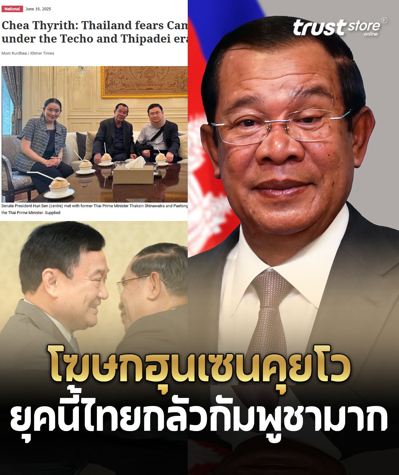 19 มิ.ย. 68 – Khmer Times รายงาน นายเจีย ธิริธ โฆษกของ ฮุน เซน ประธานวุฒิสภากัมพูชา กล่าวว่า ประเทศไทยกลัวกัมพูชาในยุคที่ ฮุน เซน และ ฮุน มาเนต ขึ้นเป็นผู้นำกัมพูชา