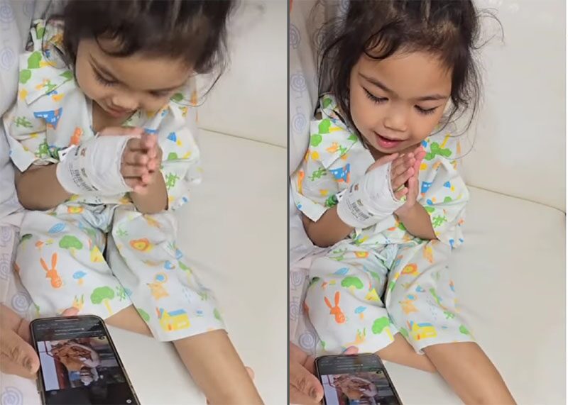 ล่าสุด จูน เพ็ญชุลี ได้โพสต์คลิปวิดีโอ ขณะน้องมิลล์ยังรักษาตัวอยู่ที่โรงพยาบาล พร้อมเปิดโทรศัพท์ที่เปิดรูปของหลวงพ่อหนุ่ม และบอกให้ลูกไหว้อนุโมทนาบุญ