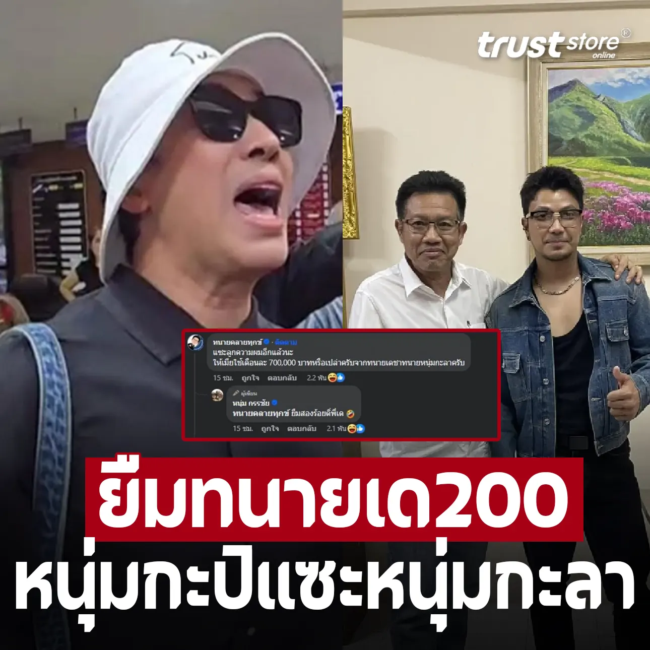 ท่ามกลางหลายคนคอมเมนต์สนั่น พบว่าด้าน ทนายเดชา ทนายความของ หนุ่ม กะลา ก็ได้มาคอมเมนต์บอกว่า “แซะลูกความผมอีกแล้วนะ ให้เมียใช้เดือนละ 700,000 บาทหรือเปล่าครับจากทนายเดชาทนายหนุ่มกะลาครับ”หนุ่ม กรรชัย คอมเมนต์ตอบกลับว่า “ยืมสองร้อยดิ่พี่เด”
