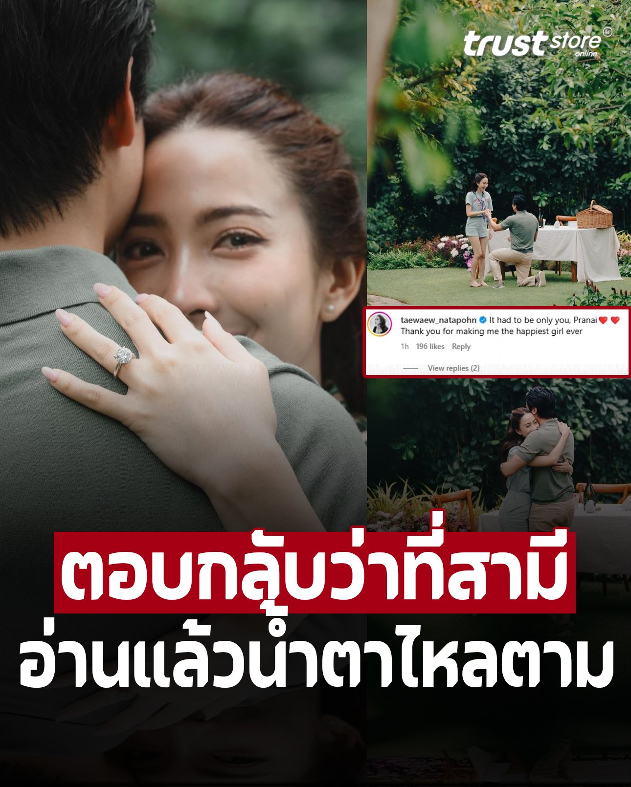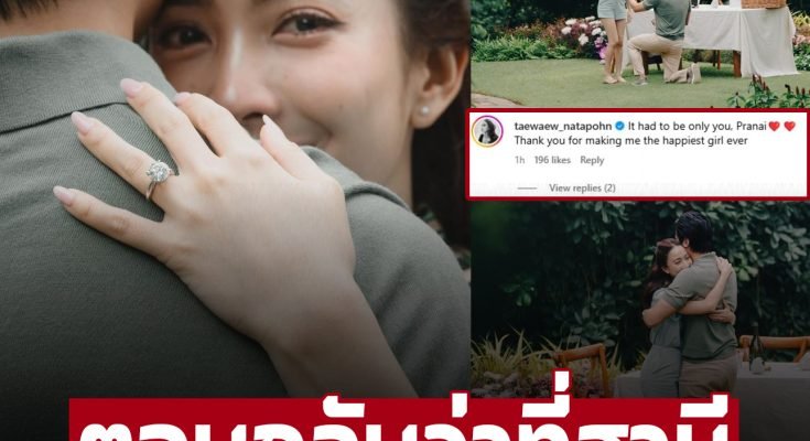 ล่าสุดวันนี้ (30 มิ.ย.) ทางด้านไฮโซณัย โพสต์อินสตราแกรมส่วนตัว @pranaip เผยภาพโมเมนต์ช่วงนาทีขอแต่งงาน พร้อมข้อความระบุว่า “She said YES” ในขณะที่สาวแต้ว คอมเมนต์บอกว่า “It had to be only you, Pranai Thank you for making me the happiest girl ever” (ต้องเธอเท่านั้นปราณัย ขอบคุณที่ทำให้ฉันเป็นผู้หญิงที่มีความสุขที่สุด)