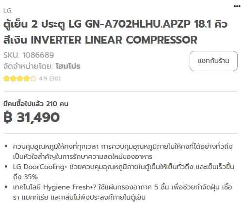 ทั้งนี้จากการตรวจสอบในเว็บไซต์สินค้าออนไลน์ ปรากฏว่า ตู้เย็นที่ปรากฏในห้องนอนที่ ฮุน เซน พา น.ส.แพทองธาร ทั้วร์นั้น ราคา ประมาณ 31,490 บาท เป็นตู้เย็น 2 ประตู LG GN-A702HLHU.APZP 18.1 คิว สีเงิน INVERTER LINEAR COMPRESSOR