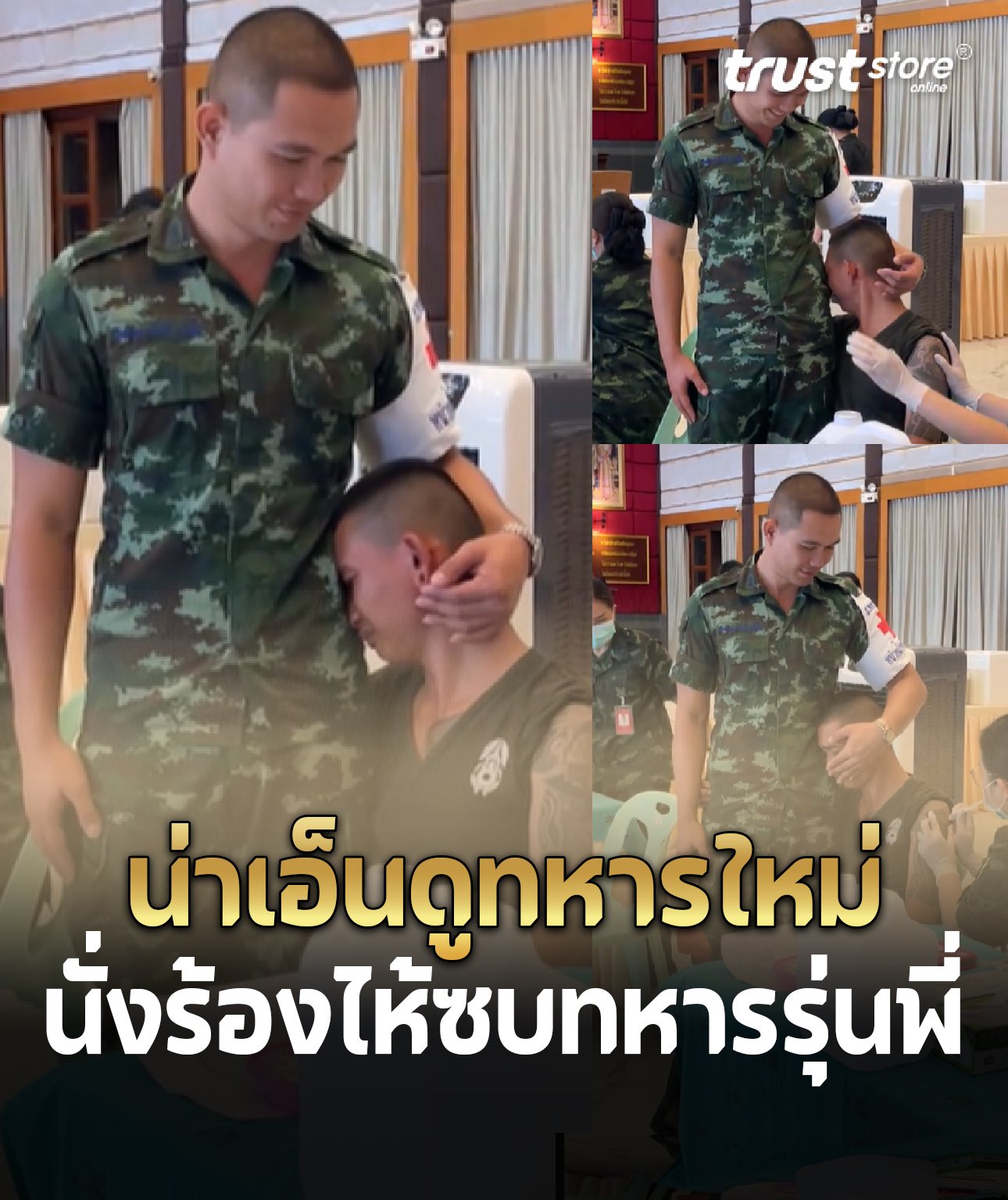 หมดกันความโหด! น่าเอ็นดูทหารใหม่ กลัวเข็มฉีดยานั่งร้องไห้ซบทหารรุ่นพี่ ชาวเน็ตแห่สงสัย แล้วที่แขนใช้อะไรสัก?
