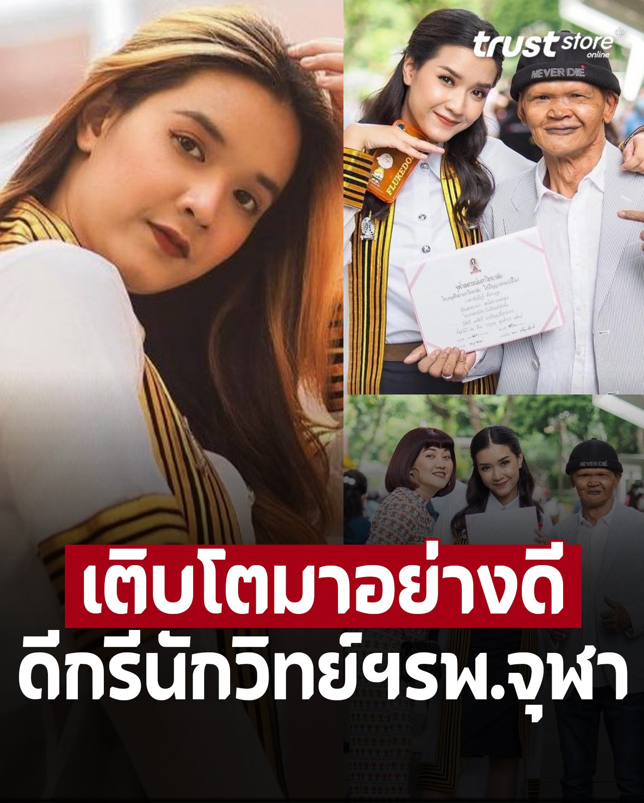 ซึ่งปัจจุบันโตเป็นสาววัย 25 ปีแล้ว จบจากคณะวิทยาศาสตร์ จุฬาลงกรณ์มหาวิทยาลัย และทำงานเป็นนักวิทยาศาสตร์การแพทย์ ศูนย์วิทยาศาสตร์โรคระบาดใหม่โรงพยาบาลจุฬาฯ นั่นเอง