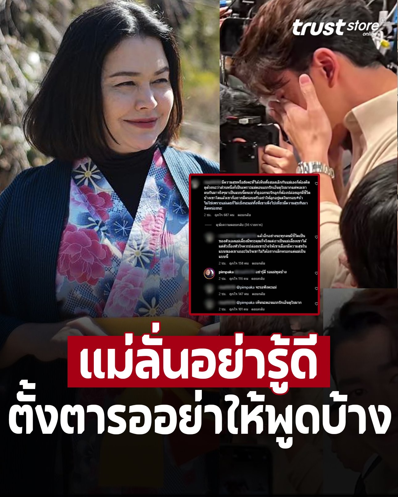 ด้านอินสตาแกรมแม่หมู ก็เจอทัวร์ลงชุดใหญ่ เข้าไปถล่มกันสนั่น ซึ่งมีเมนต์ที่แม่หมูไม่ทนฟาดกลับ หลังจากที่มีคนเข้ามาถามมีความสุขหรือยัง ที่ได้เห็นทั้งสองคนเลิกกัน ให้คิดด้วยว่าส่วนหนึ่งเป็นเพราะแม่ ตอนแรกรักเอ็นดูใบมากแต่พอเขาคบกันจริงๆ มาเป็นแบบนี้ คนเขาก็ดูออก รักลูกต้องปล่อยลูกให้มีชีวิตบ้าง เขาโตแล้ว เขาอยากมีครอบครัว อย่าให้ลูกอยู่แต่ในกรอบ ถ้าไม่ใช่เพราะแม่เลยก็ไม่เชิงนะ เขาเพิ่งไปเที่ยวมีความสุขกันมา คิดหน่อยนะ”