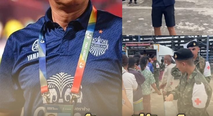 โดยนายเนวินได้ประกาศให้กับประชาชนที่เดินทางมาว่าคนไทยและคนบุรีรัมย์ไม่ทิ้งกันยามเดือดร้อนจะต้องช่วยเหลือกันทั้งหมดให้แบ่งพื้นที่กันอยู่น้ำอาหารรับประทานได้ฟรีจะมีไว้บริการให้แต่ถ้ายังไม่พอจะเปิดวัดและโรงเรียนไว้รออีก