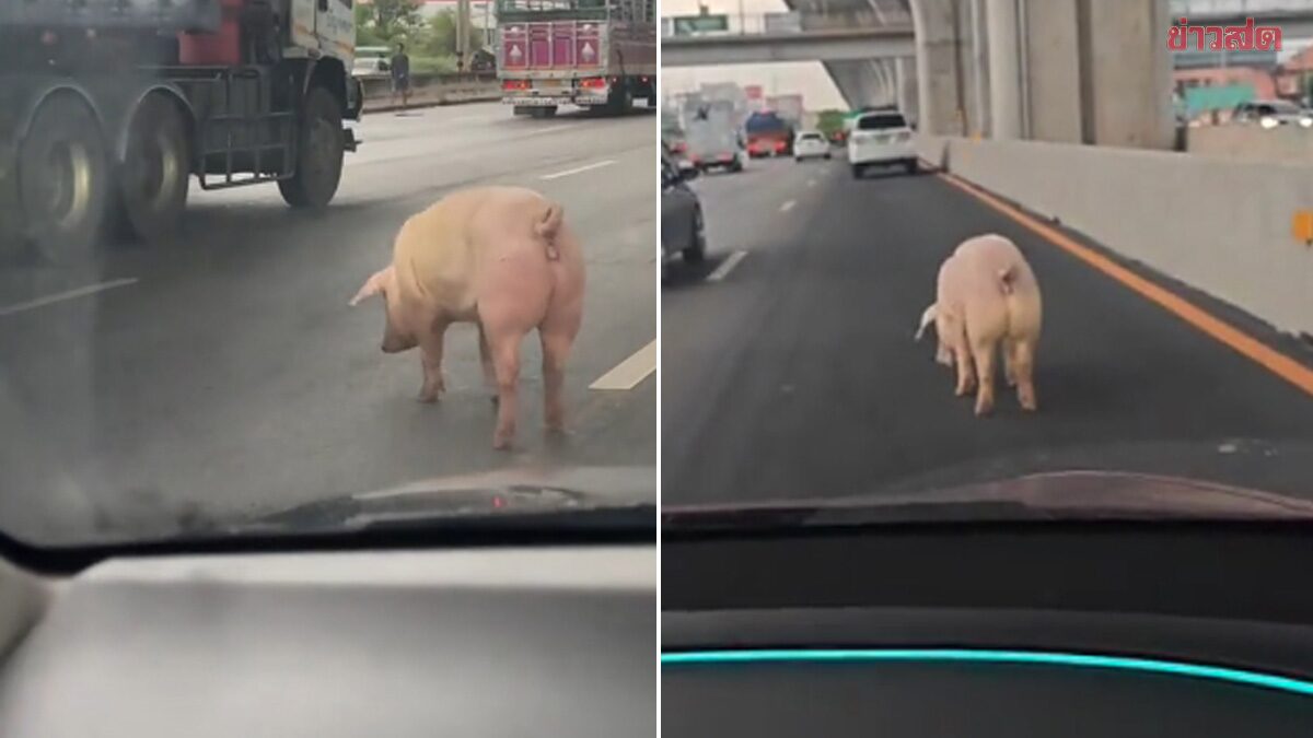 วันที่ 11 ก.ค.68 สมาชิก TikTok @mint.eoidai โพสต์คลิปเจอหมูตัวโตเต็มวัยตกอยู่กลางถนนพระรามสอง จนทำให้รถติด เพราะรถมาถึงต้องคอยหลบหมูตัวนี้