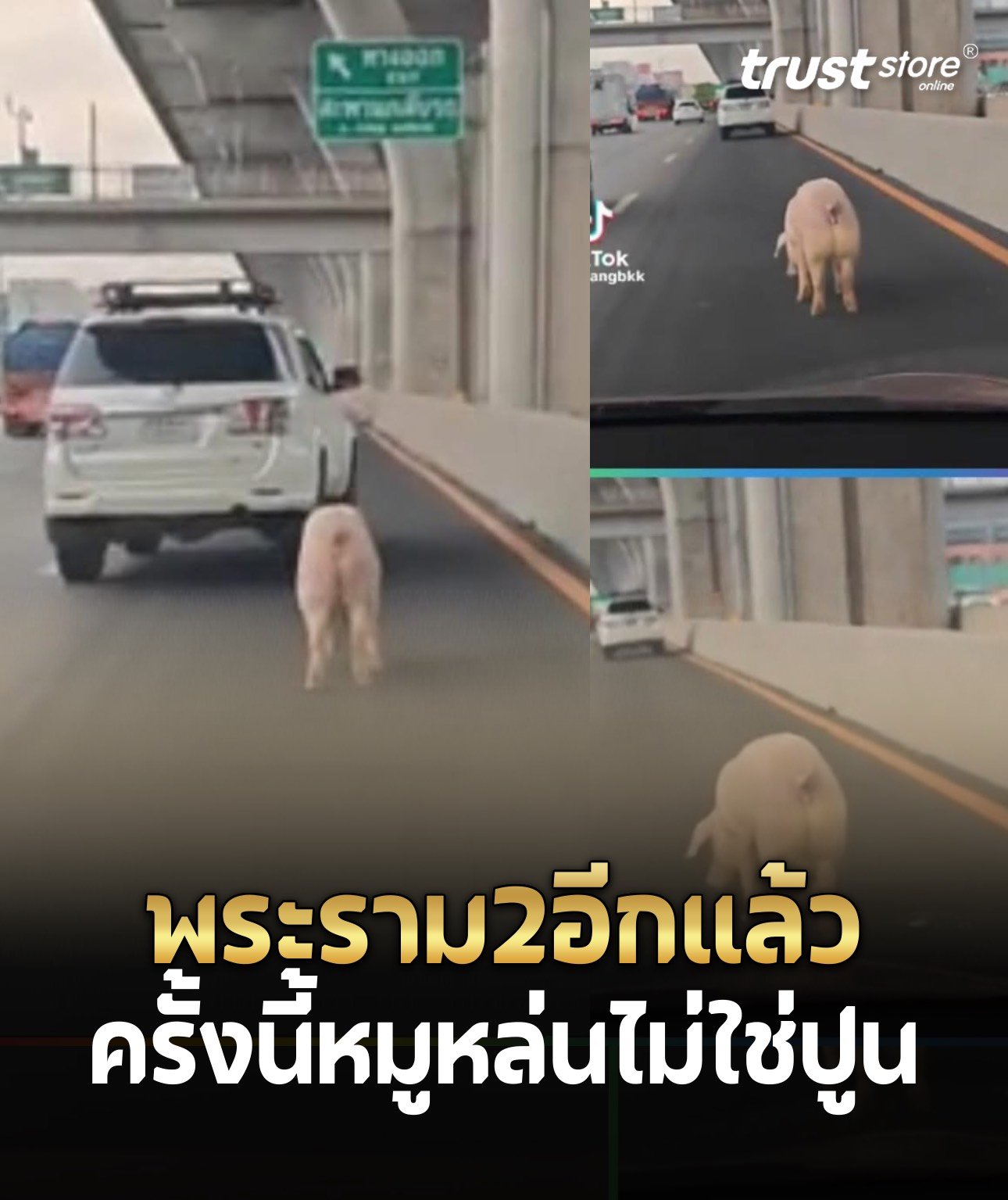 ขณะเดียวกันสมาชิก TikTok @nangbkk โพสต์คลิปเจ้าหมูตัวเดียวกัน ที่เดินอยู่บนถนนพระรามสอง ซึ่งเจ้าตัวระบุว่า หมูตัวนี้ตกจากรถขนหมูมาบนถนน ซึ่งรถคันดังกล่าววนกลับมารับตัวหมูตัวนี้ขึ้นรถไปเรียบร้อย