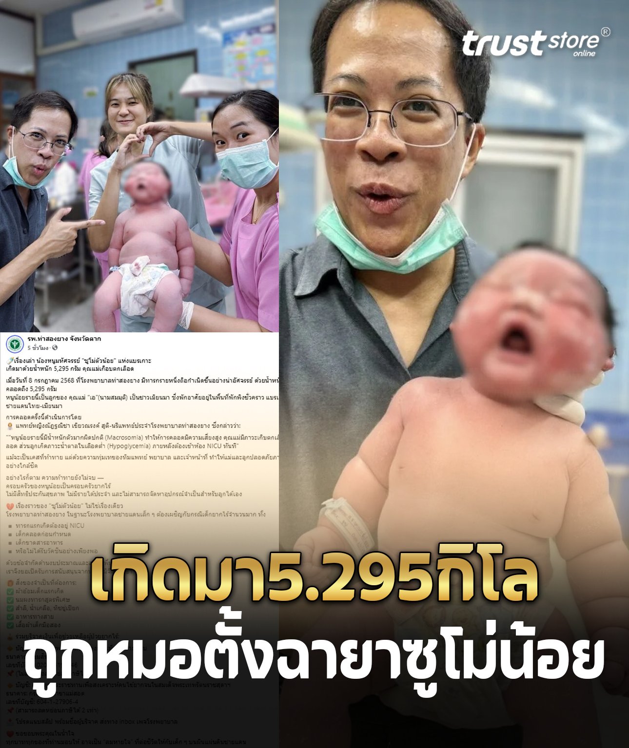 ซูโม่น้อย กำเนิดมาอย่างน่าอัศจรรย์ และการทำคลอดครั้งนี้ทางโรงพยาบาลแจ้งในเพจว่า ดำเนินการโดยแพทย์หญิงณัฎฐณิชา เขียวณรงค์ สูติ-นรีแพทย์ประจำโรงพยาบาลท่าสองยาง ได้เปิดเผยว่า หนูน้อยรายนี้มีน้ำหนักตัวมากผิดปกติ(Macrosomia) ทำให้การคลอดมีความเสี่ยงสูง ทำให้แม่มีภาวะเกือบตกเลือดหลังคลอด ส่วนลูกเกิดภาวะน้ำตาลในเลือดต่ำ (Hypoglycemia) ภายหลังต้องเข้าห้อง NICU ทันที แม้จะเป็นเคสที่ท้าทาย แต่ด้วยความทุ่มเทของทีมแพทย์ พยาบาล และเจ้าหน้าที่ ทำให้แม่และลูกปลอดภัยภายใต้การดูแลอย่างใกล้ชิด