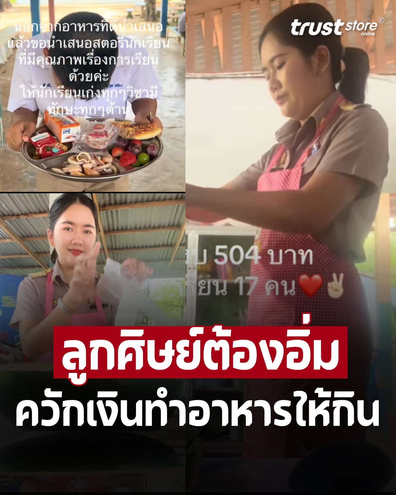 จากกรณีโซเชียลแห่ชื่นชมครูสาว ที่โพสต์คลิปลงติ๊กต็อกชื่อ kruduen245 ทำอาหารกลางวันด้วยงบ 504 บาท เลี้ยงเด็กนักเรียน 17 คน ในโรงเรียนขนาดเล็กแห่งหนึ่ง พร้อมระบุแคปชั่นว่า “ครูที่หมายถึงผู้ทำทุกอย่าง”