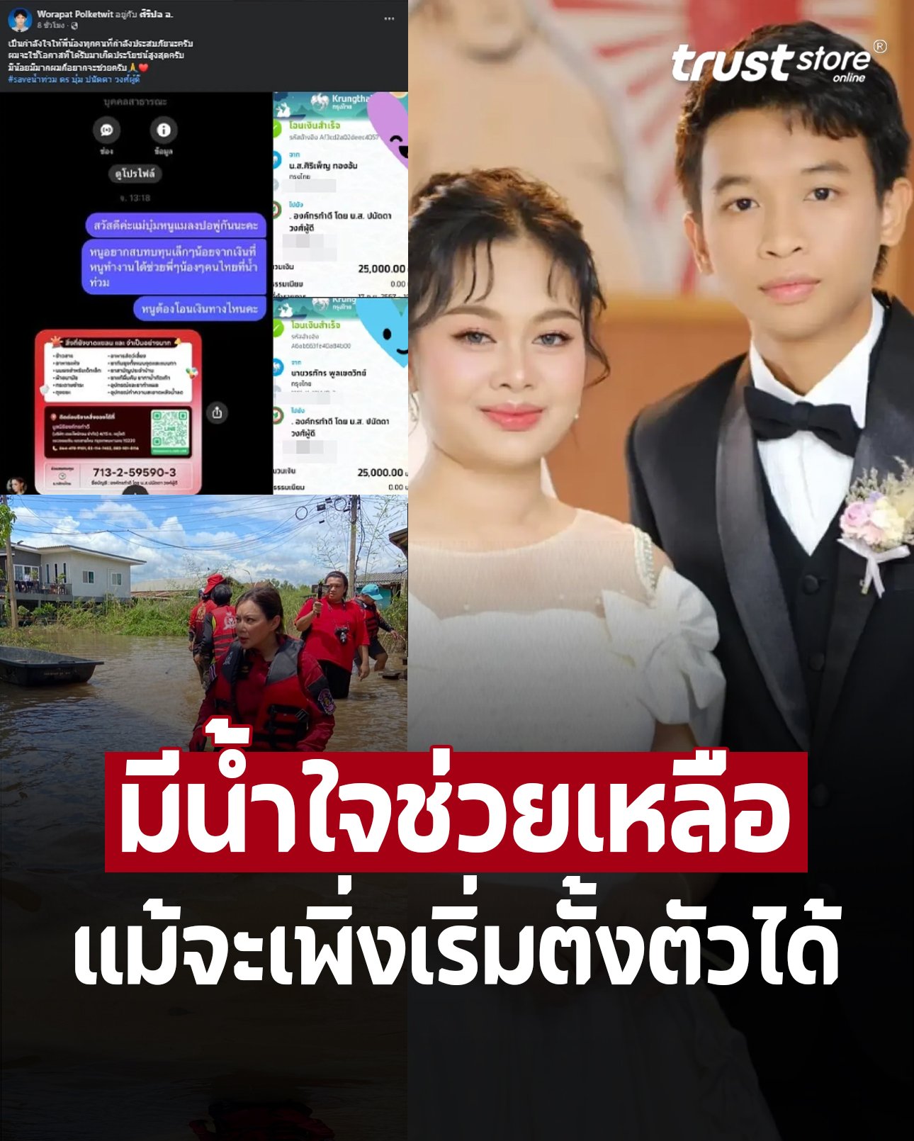 ล่าสุด แมงปอ-น้องพู่กัน ได้โพสต์ข้อความหลังโอนเงินช่วยเหลือน้ำท่วม 50,000 บาท มอบให้กับมูลนิธิองค์กรทำดีของ แม่บุ๋ม ปนัดดา เพื่อนำไปส่งต่อให้กับผู้ประสบภัยน้ำท่วม โดยเขียนแคปชั่นว่า…”เป็นกำลังใจให้พี่น้องทุกคนที่กำลังประสบภัยนะครับผมจะใช้โอกาสที่ได้รับมาเกิดประโยชน์สูงสุดครับมีน้อยมีมากผมก็อยากจะช่วยครับ”