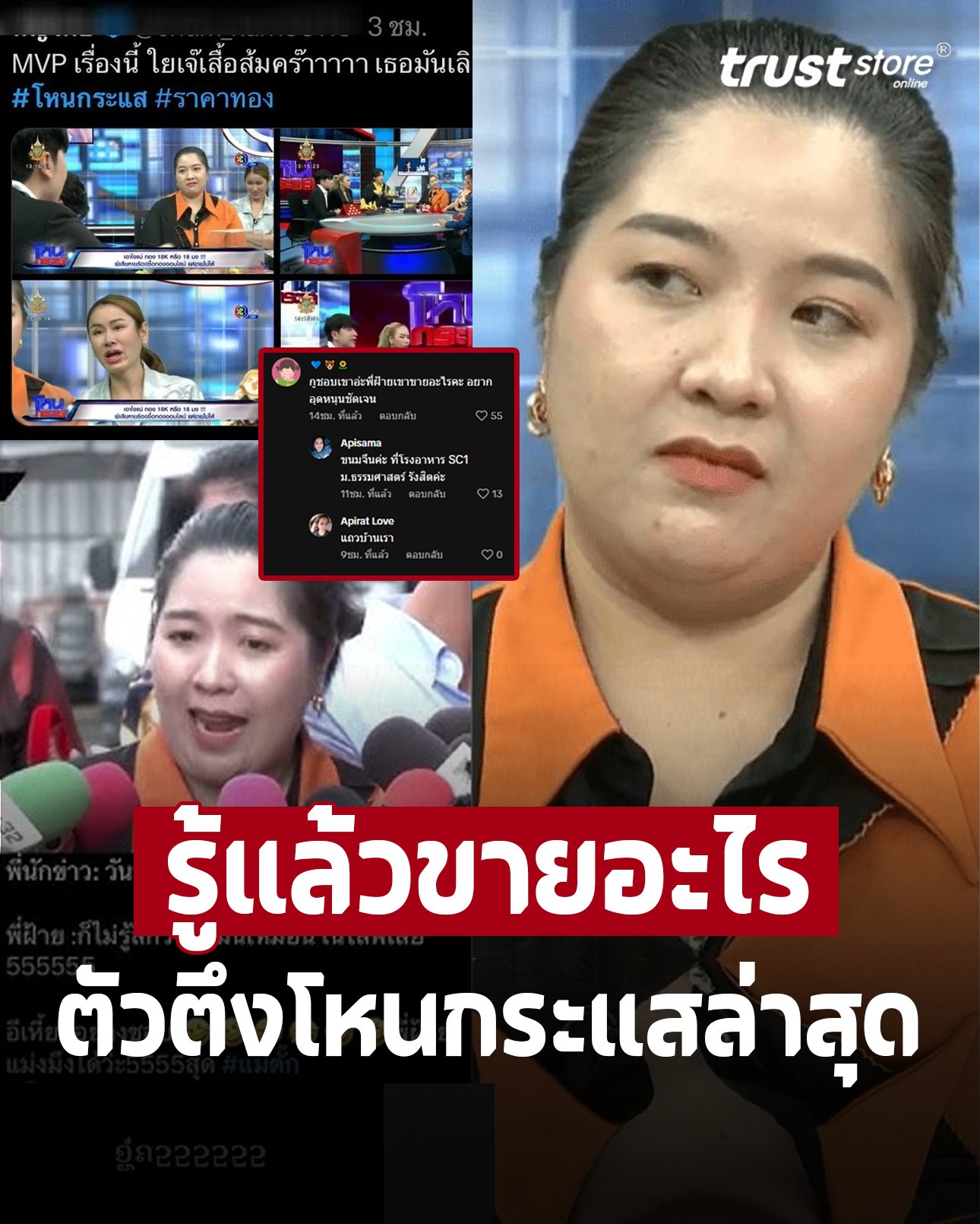 โดยในรายได้ แม่ตั๊ก และ คุณเบียร์ สองสามีภรรยาเจ้าของร้าน มาถกประเด็นกับผู้เสียหายจำนวนมาก ที่ซื้อทองไปและเจอเรื่องเดียวกันว่า เอาทองไปขายต่อไม่ได้ราคาตามที่คิด โดยมีคนกลางจาก สมาคมค้าทอง และ สคบ. มาร่วมถกประเด็นด้วย
