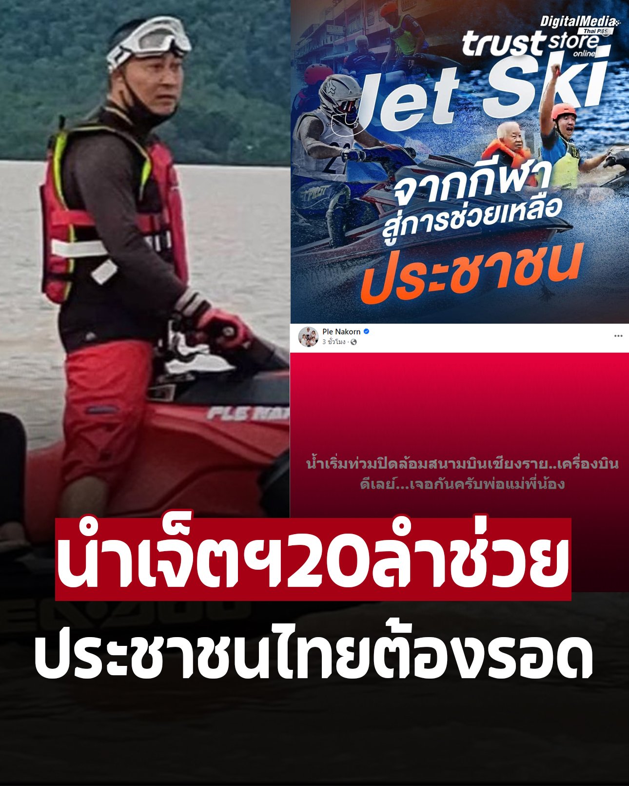 เปิ้ล นาคร ลุยขี่เจ็ตสกี 20 ลำ ช่วยน้ำท่วมเชียงราย ตามสบทบทีมงานวันนี้ ด้าน กัน จอมพลัง ประกาศตามหานักเจ็ตสกีฝีมือดีเสริมทัพช่วยผู้ประสบภัยด่วน