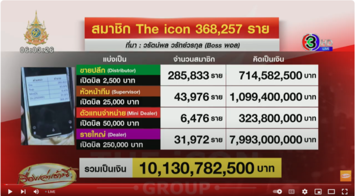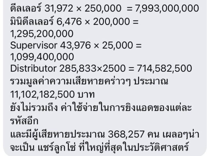 บอสพอลเปิดเผยข้อมูลยอดสมาชิกในระดับต่างๆ ของการดำเนินธุรกิจ ล่าสุด จำนวน 368,257 ราย มูลค่าเสียหายประมาณ 11,102,182,500 บาท แบ่งเป็น