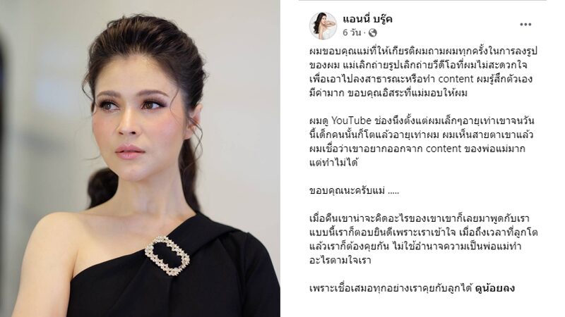 “แอนนี่ บรู๊ค” เล่าเหตุผล ที่ไม่ค่อยลงรูปลูกชาย “น้องฑีฆายุ” เพราะคำพูดนี้จากลูกชาย โซเชียลคอมเมนต์ชื่นชมแนวทางการเลี้ยงลูก