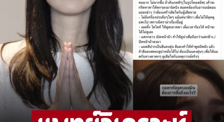 – ลุคแต่งหน้าวันนี้ เน้นให้ดูสะอาดตา เส้นกรีดตาต้องไม่คมมาก ไม่ลากขึ้น ถ้าสังเกตดีๆ(ในรูปโคลสอัพ) เค้าจะกรีดหาตาให้ตกๆลงมานิดนึง สอดคล้องกับอารมณ์ตอนแถลงข่าว ว่าต้องเศร้าเสียใจกับผู้เสียหาย