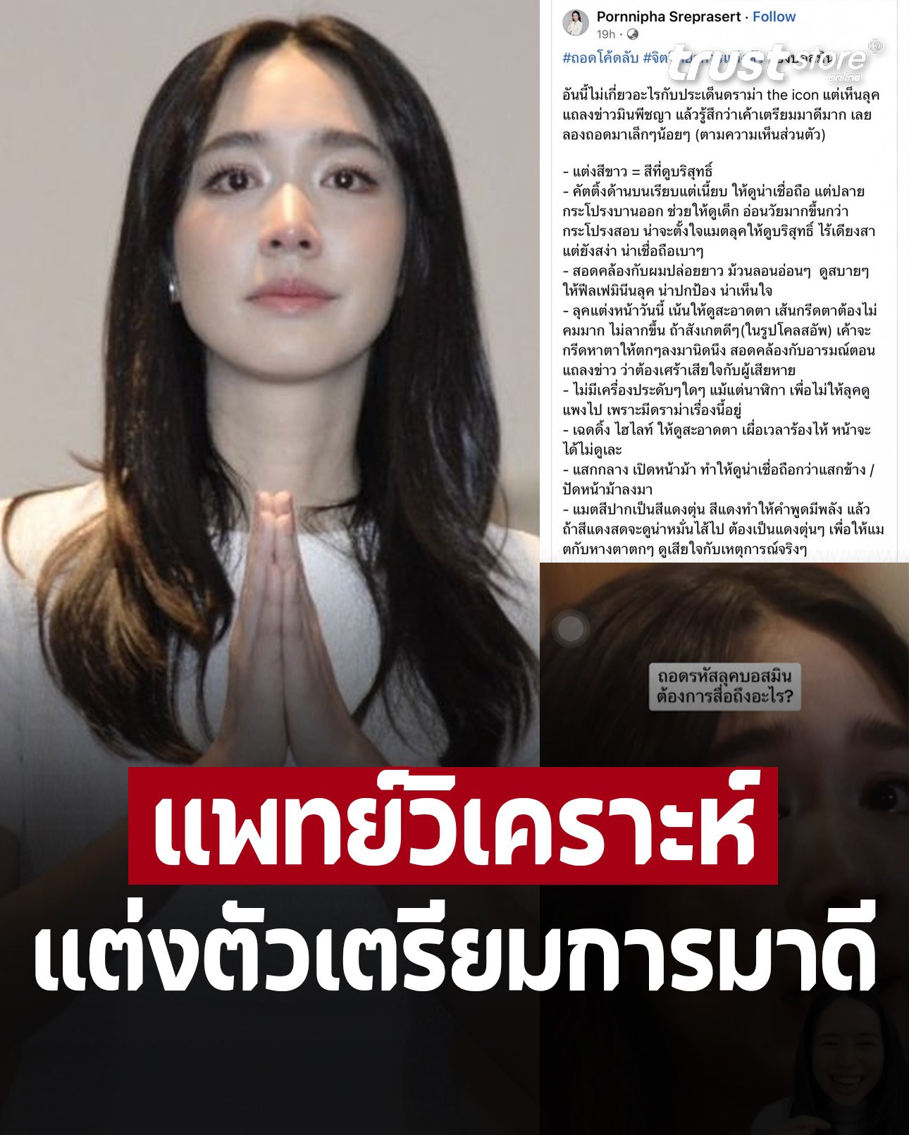 อันนี้ไม่เกี่ยวอะไรกับประเด็นดราม่า the icon แต่เห็นลุคแถลงข่าวมินพีชญา แล้วรู้สึกว่าเค้าเตรียมมาดีมาก เลยลองถอดมาเล็กๆน้อยๆ (ตามความเห็นส่วนตัว)