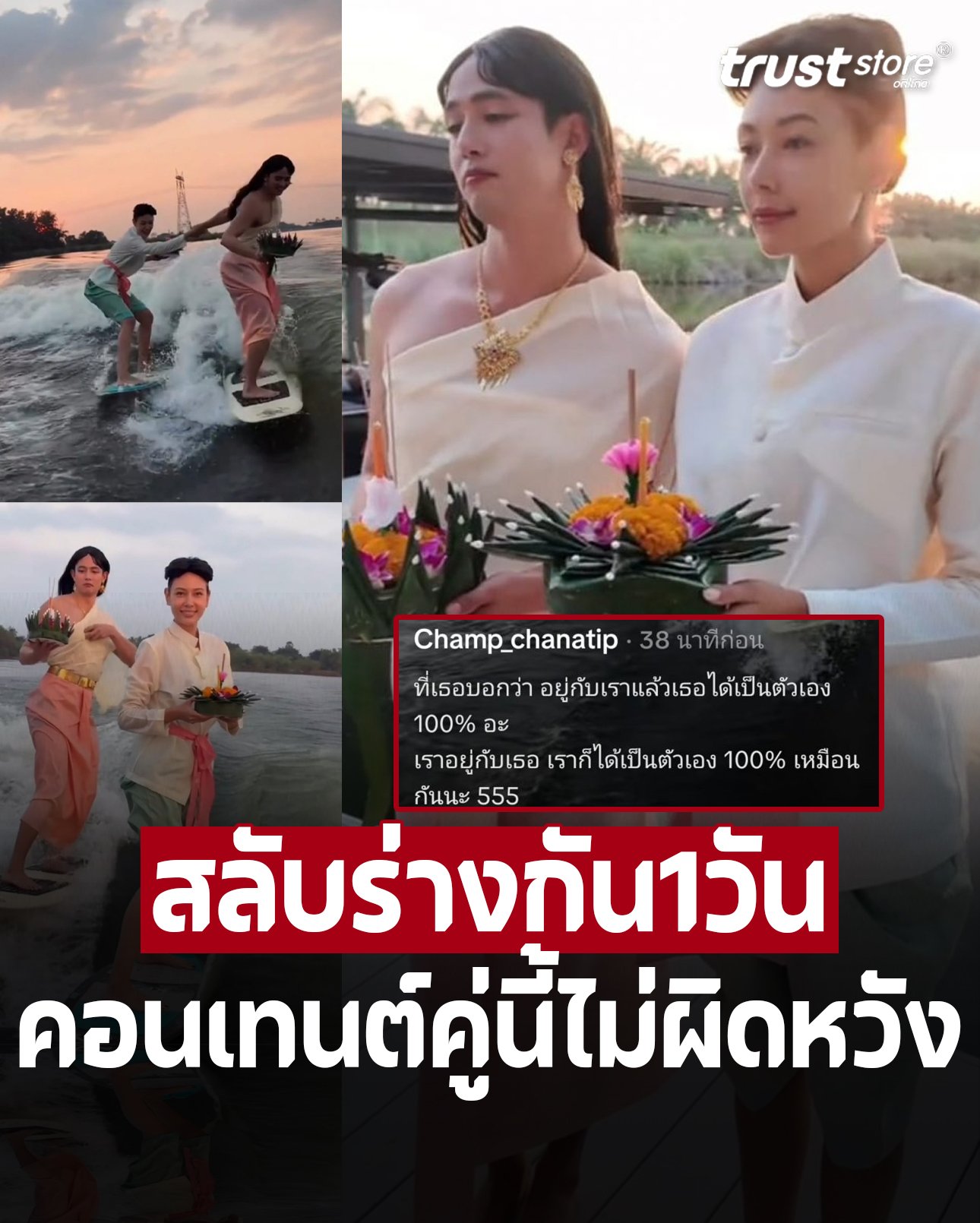 ไม่ทำให้แฟน ๆ ผิดหวัง สมกับเป็นคู่รักที่มาแรงแห่งปี “แชมป์ ชนาธิป” และแฟนสาว “แซมมี่” สองดาราที่ต่างคนต่างมีเสน่ห์เหลือล้น! คู่นี้ยืนยันสถานะการเป็นแฟนกันอย่างชัดเจนและเปิดเผยต่อสาธารณชนให้ทุกคนได้ร่วมยินดี ลอยกระทงปีนี้ทั้งสองคนจึงไม่เหงาอีกต่อไป แต่กลับอบอวลไปด้วยความรักและความโรแมนติก