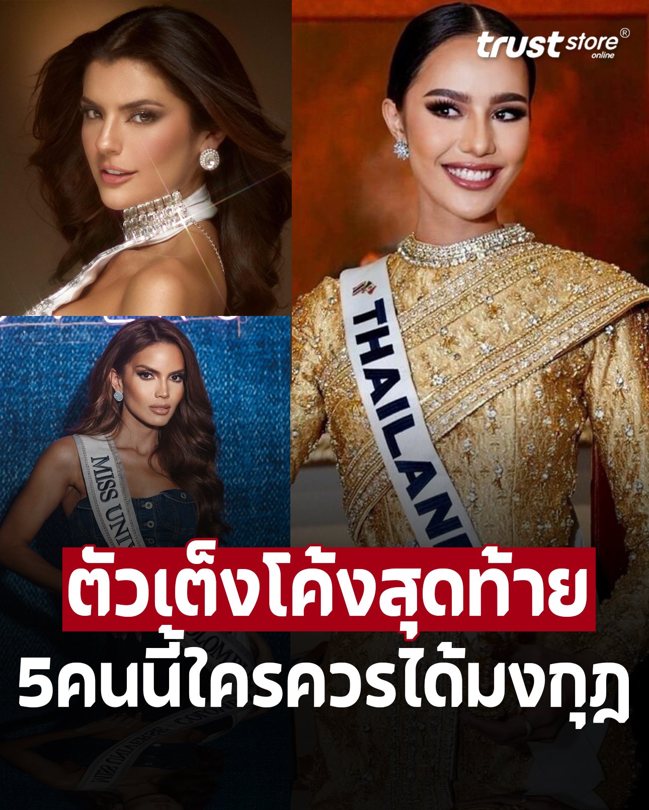 สำหรับ 5 สาวงามตัวเต็ง ที่ถูกจับตามองในปีนี้ เราจะได้เห็นการเปรียบเทียบกันอย่างสนุกสนาน ไม่ว่าจะเป็นการคาดเดาผลลัพธ์หรือการทำนายว่าใครจะเป็นผู้เข้ารอบสุดท้าย และมงกุฎจะไปตกที่ใคร! ทุกคนที่ติดตามการประกวดต่างมีความหวังว่า ตัวแทนจากประเทศไทย จะสามารถทำผลงานได้ดีและไปไกลถึงตำแหน่งสูงสุด! จะมีใครบ้างมาชมกันค่ะ
