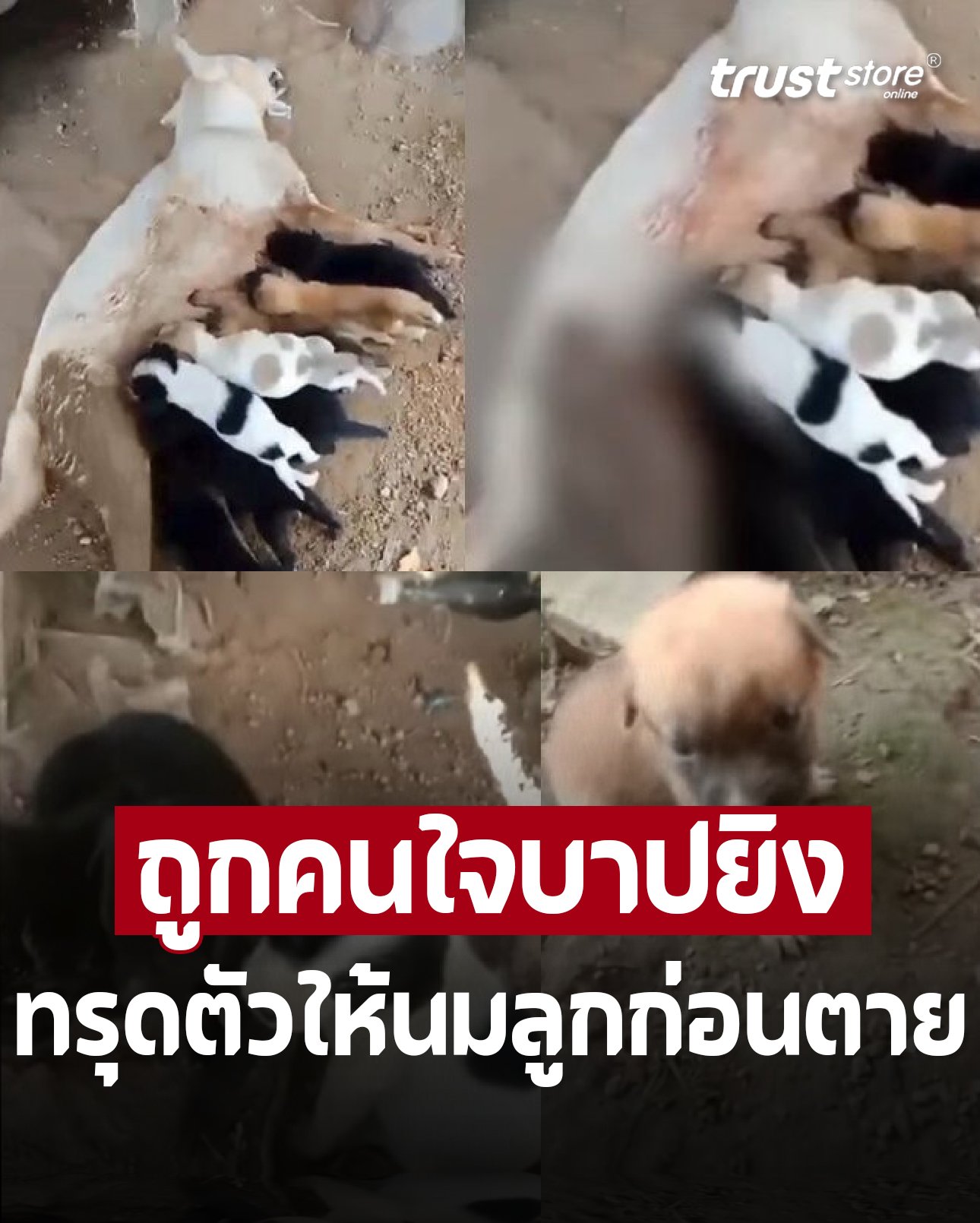 เจ้าของเปิดใจเศร้า สะเทือนใจ แม่หมาโดนยิงเลือดนอง เดินมาทรุดตัวให้นมลูกๆครั้งสุดท้าย ลูกๆทั้ง 8 ดูดนมอยู่ไม่รู้ว่าแม่ตายแล้ว