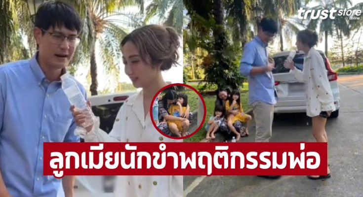 – ละเมียกับลูกนั่งยิ้มอยู่ข้างหลัง