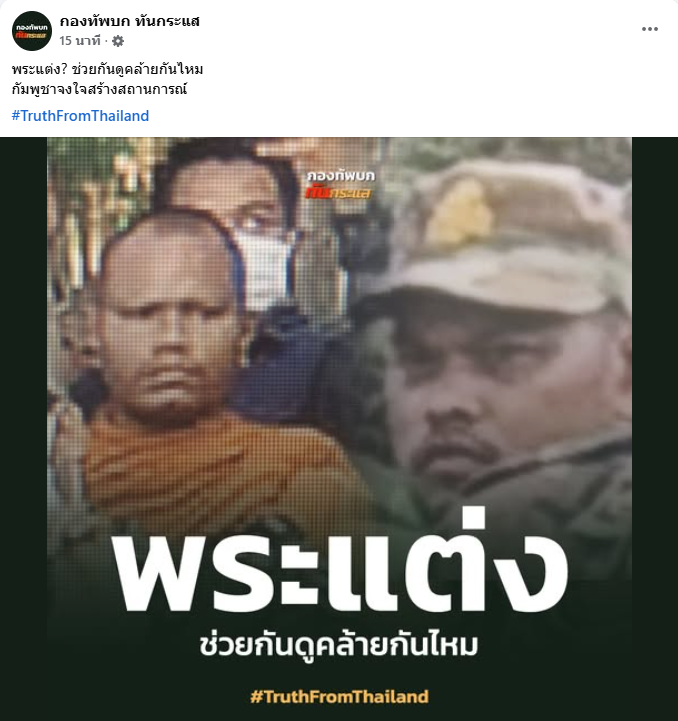 หรือทหารเขมร ปลอมเป็นพระ? จับผิดเหตุป่วนบ้านหนองหญ้าแก้ว หรือเพิ่งบวชเมื่อวาน เพจ กองทัพบก ทันกระแส จับผิด หน้าเหมือนกันมาก