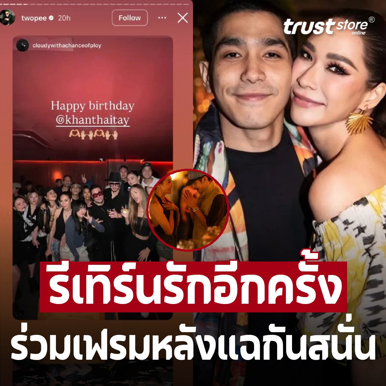 แต่ล่าสุด โลกโซเชียลก็ร้อนระอุอีกครั้ง เมื่อมีคนตาดีแอบเห็นทั้งคู่ไปโผล่ในร้านอาหารเดียวกัน และยิ่งไปกว่านั้น ยังถูกจับสังเกตว่า ทั้งคู่ไปปรากฏตัวในงานวันเกิดของ ขัน ไทยเทเนียม ซึ่งเป็นปาร์ตี้ส่วนตัว มีเพียงคนสนิทวงในเท่านั้นที่ได้รับเชิญ