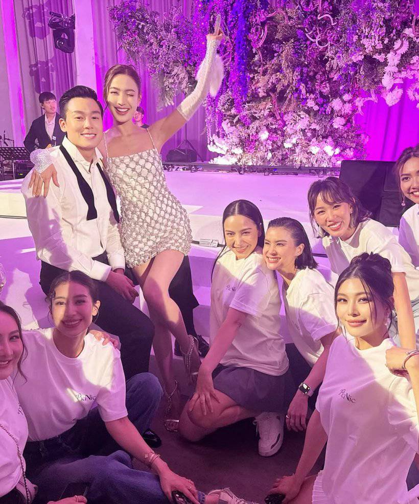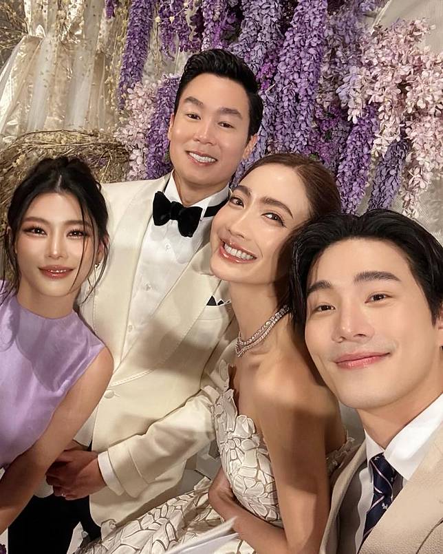 เช่นเดียวกับกุ๊บกิ๊บ สุมณทิพย์ ที่งานนี้เป็นหนึ่งในแก๊งเพื่อนเจ้าสาว ก็ควงคู่มาพร้อมสามีสุดเลิฟ บี้ ธรรศภาคย์ และยังได้ฝากข้อความอวยพรถึงเจ้าสาวที่เป็นถึงเพื่อนรักเพื่อนซี้คนนี้ด้วยว่า