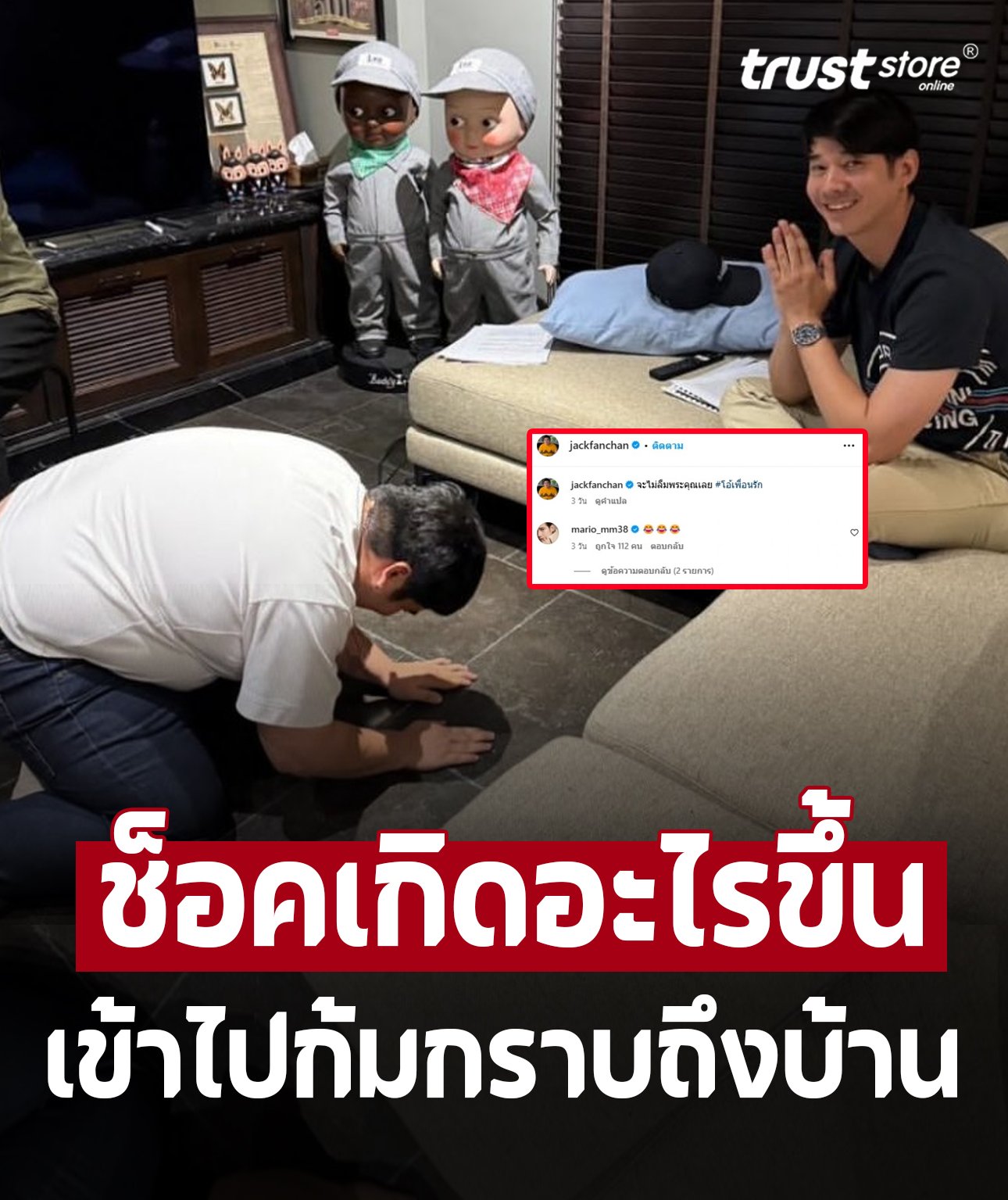 หลายคนต่างฮือฮาอย่างมากเมื่อ แจ็ค แฟนฉัน โพสต์ภาพลงอินสตราแกรม @jackfanchan เป็นภาพที่กราบเพื่อนระก มาริโอ้ เมาเร่อ พร้อมแคปชั่นระบุว่า “จะไม่ลืมพระคุณเลย #โอ้เพื่อนรัก”