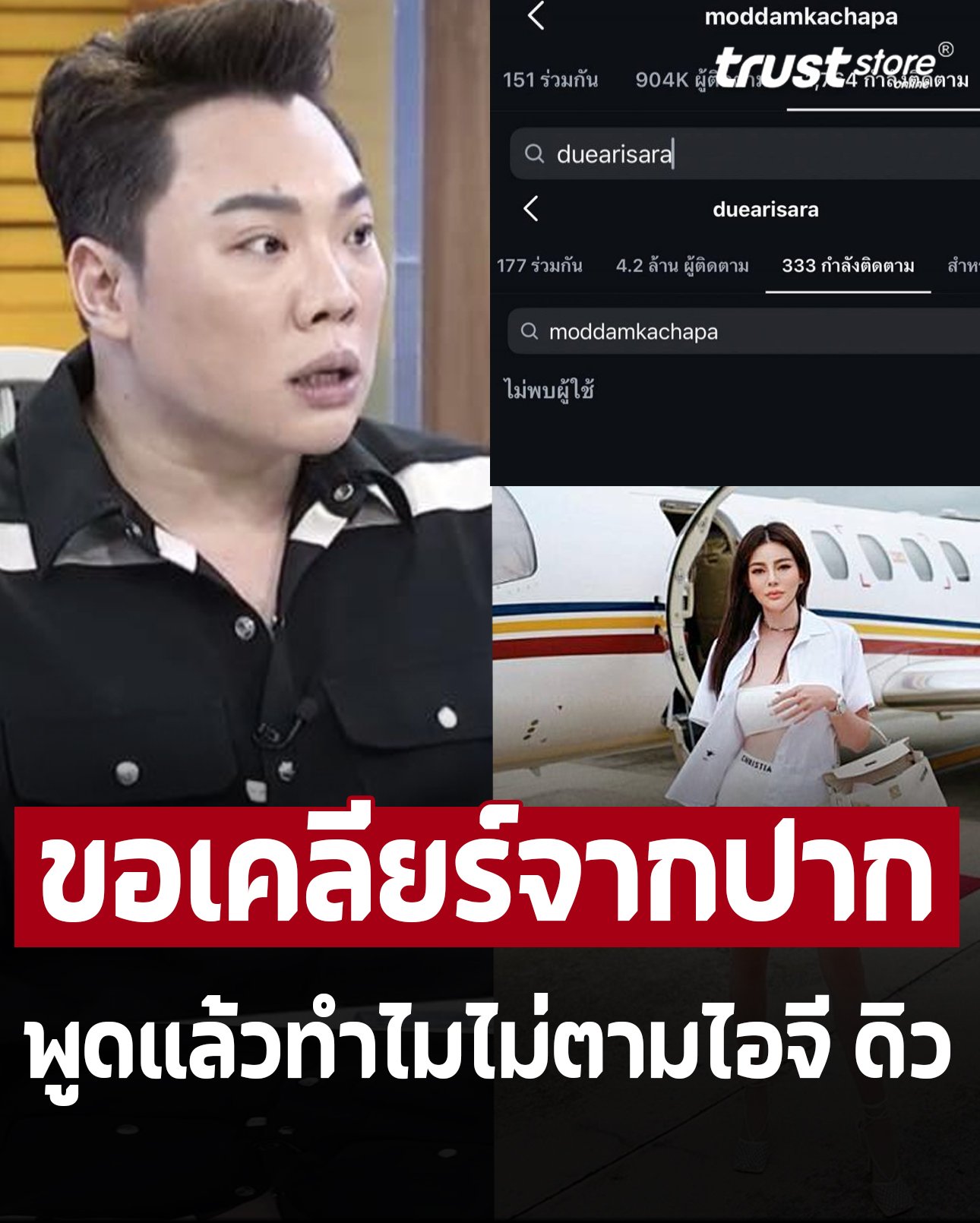 เป็นอีกหนึ่งประเด็นบันเทิงที่ถูกพูดถึงมากอีกเรื่อง กับกรณีชาวเน็ตจับตาว่า ทำไม ดาราสาว ดิว อริสรา และ พิธีกรดัง มดดำ คชาภา ไม่ฟอลโล่วอินสตาแกรมกัน ไม่ได้ฟอลแต่ต้น หรือ เพิ่งอันฟอลกัน? ล่าสุด มดดำ คชาภา ขอเคลียร์จากปากผ่านทางรายการ ข่าวใส่ไข่ ระบุว่า