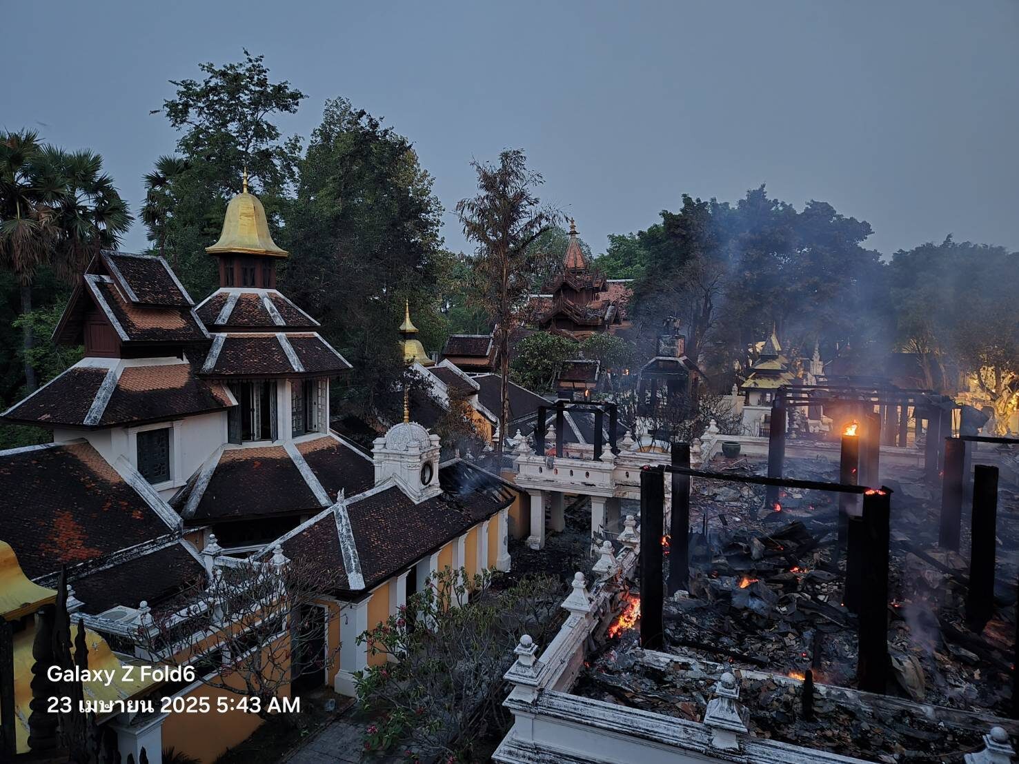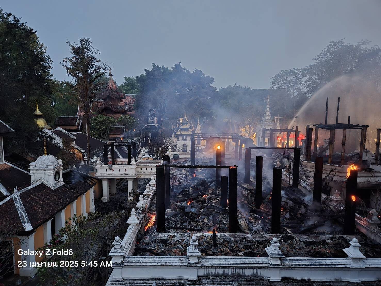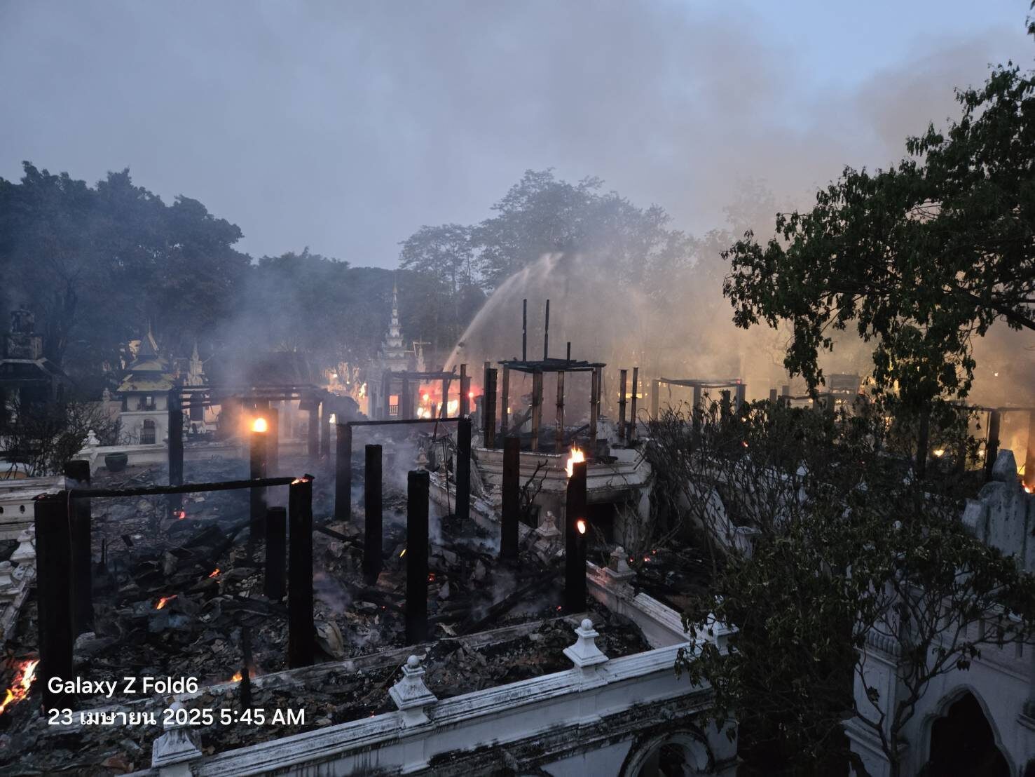 วันที่ 23 เม.ย.2568 ผู้สื่อข่าวรายงานว่า จากกรณีเกิดเหตุ ไฟไหม้โรงแรมดาราเทวี ต.ท่าศาลา อ.เมือง จ.เชียงใหม่ ซึ่งเป็นโรงแรมชื่อดังของจังหวัด เมื่อช่วงกลางดึกที่ผ่านมา โดยเจ้าหน้าที่ได้ระดมรถน้ำเข้าทำการควบคุมเพลิง