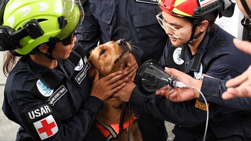 รวมถึงเตรียมยาพ่น สำหรับสุนัขที่เกิดอาการหอบ ซึ่งเป็นการประยุกต์ใช้กับยาของมนุษย์ ภายใต้คำแนะนำของสัตวแพทย์ โดยระบุว่าวันนี้ไม่รู้ภารกิจจะต้องทำอะไรบ้าง เพียงแต่ได้รับการร้องขอก็จะต้องเตรียมความพร้อมเอาไว้ให้พร้อมทุกเมื่อนอกจากภารกิจการช่วยค้นหาผู้สูญหายที่ติดอยู่ภายในซากอาคารแล้วบรรดาสุนัข K9 เหล่านี้ยังได้ช่วยเหลือเรื่องของการเยียวยาที่ใจ ญาติของผู้สูญหาย ซึ่งเมื่อช่วงเช้านี้เจ้าหน้าที่ได้นำสุนัข K9 ชื่อ “เล็ก” เข้าไปพบปะกับญาติๆ ที่อยู่ในศูนย์พักพิง