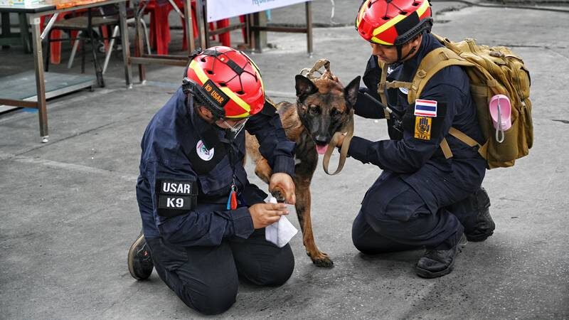 เมื่อเวลา 15.00 น. วันที่ 2 เม.ย. 2568 ที่ ตึกก่อสร้างสำนักงานตรวจเงินแผ่นดิน ริมถนนกำแพงเพชรสอง ตรงข้ามตลาดนัดจตุจักร นายอลงกต ชูแก้ว รองผู้อำนวยการองค์การสุนัขกู้ภัยแห่งชาติ หรือ k9 usar thailand ได้สั่งผู้ควบคุม ให้เตรียมความพร้อม หลังจากได้รับสัญญาณ เจ้าหน้าที่ที่ปฏิบัติภารกิจอยู่ด้านใน