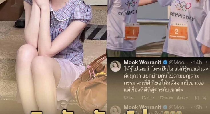 ต่อมาได้โพสต์ข้อความอีกว่า “ได้รู้ไปเลยว่าใครเป็นไง แต่ก็รู้พอแล้วล่ะค่ะมุกว่า แยกย้ายกันไปตามบุญตามกรรม คนที่ดี ก็ขอให้หลังจากนี้เขาเจอแต่เรื่องที่ดีที่คู่ควรกับเขาค่ะ”