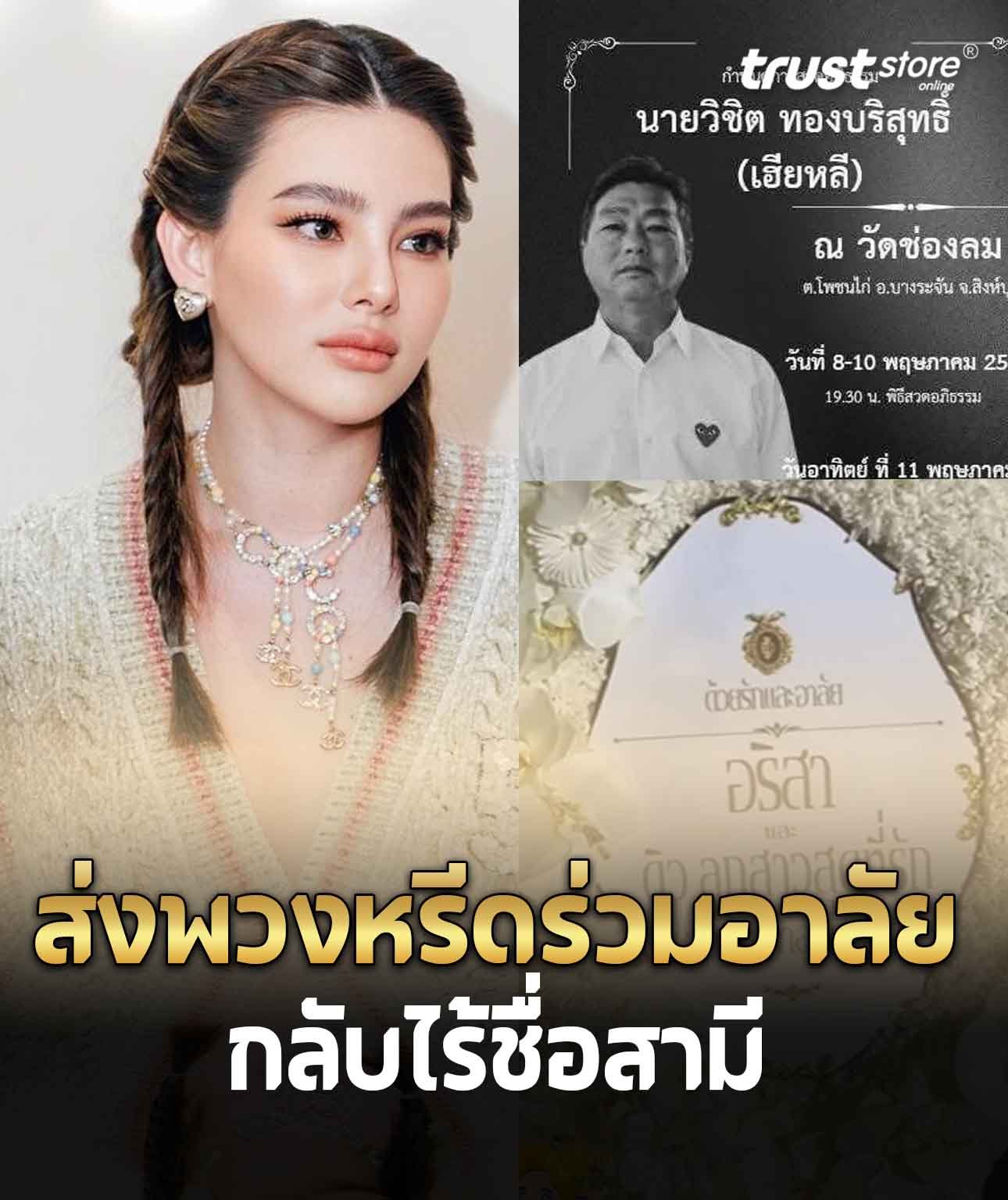 ‘ดิว อริสรา’ส่งพวงหรีดร่วมอาลัย ไม่ได้อยู่ร่วมงานคุณพ่อ ใส่แค่ชื่อแม่ หลาน ไม่มีชื่อสามี